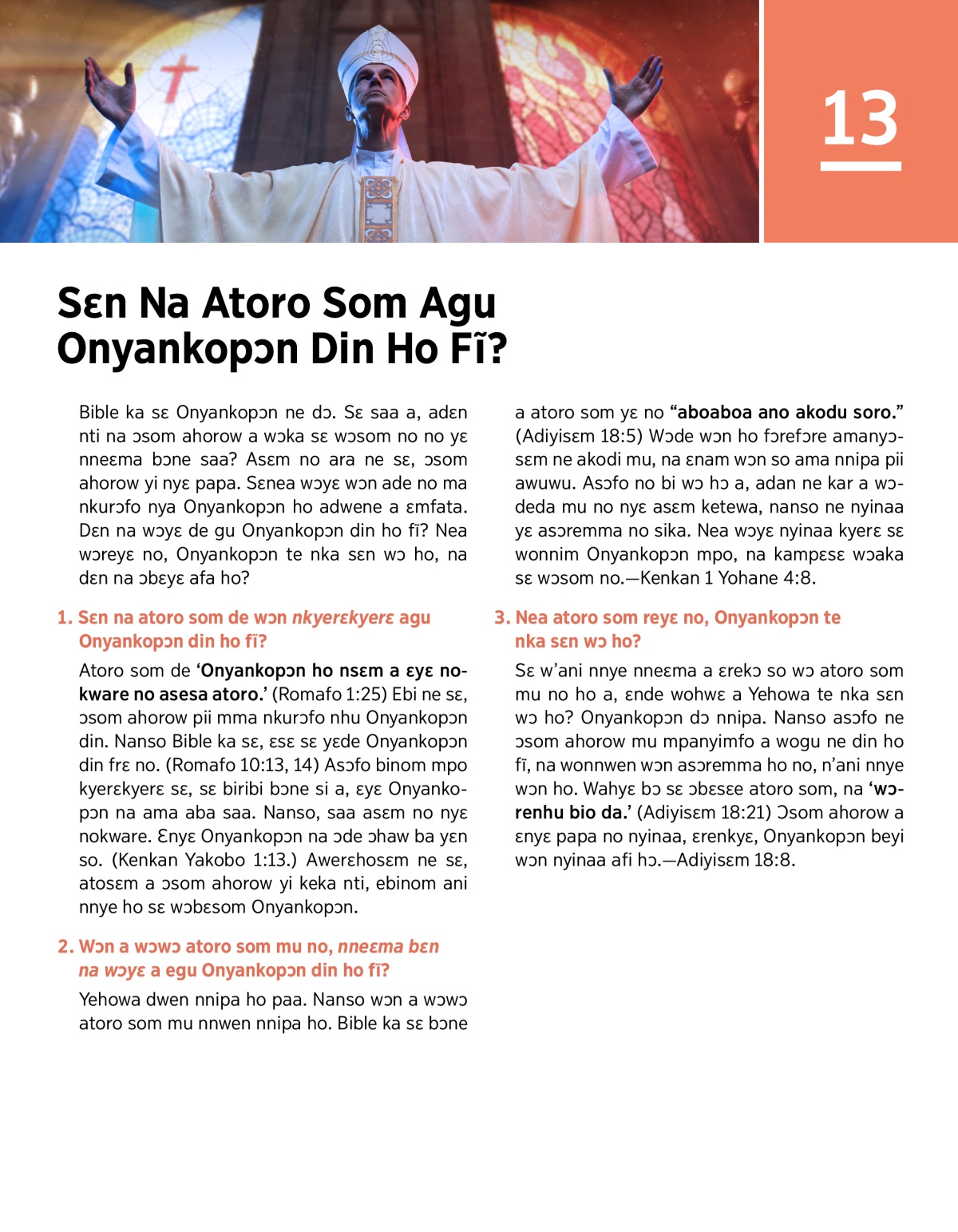 “Ɔsom Ahorow Nyinaa Yɛ Pɛ? Ne Nyinaa Twe Yɛn Bɛn Onyankopɔn Anaa?” (Ɛwɔ jw.org)