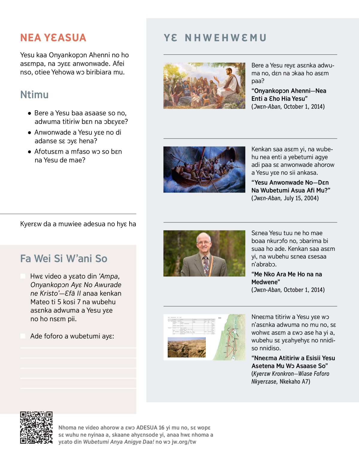“Yesu Anwonwade No—Dɛn Na Wubetumi Asua Afi Mu?” (Ɔwɛn-Aban, July 15, 2004)