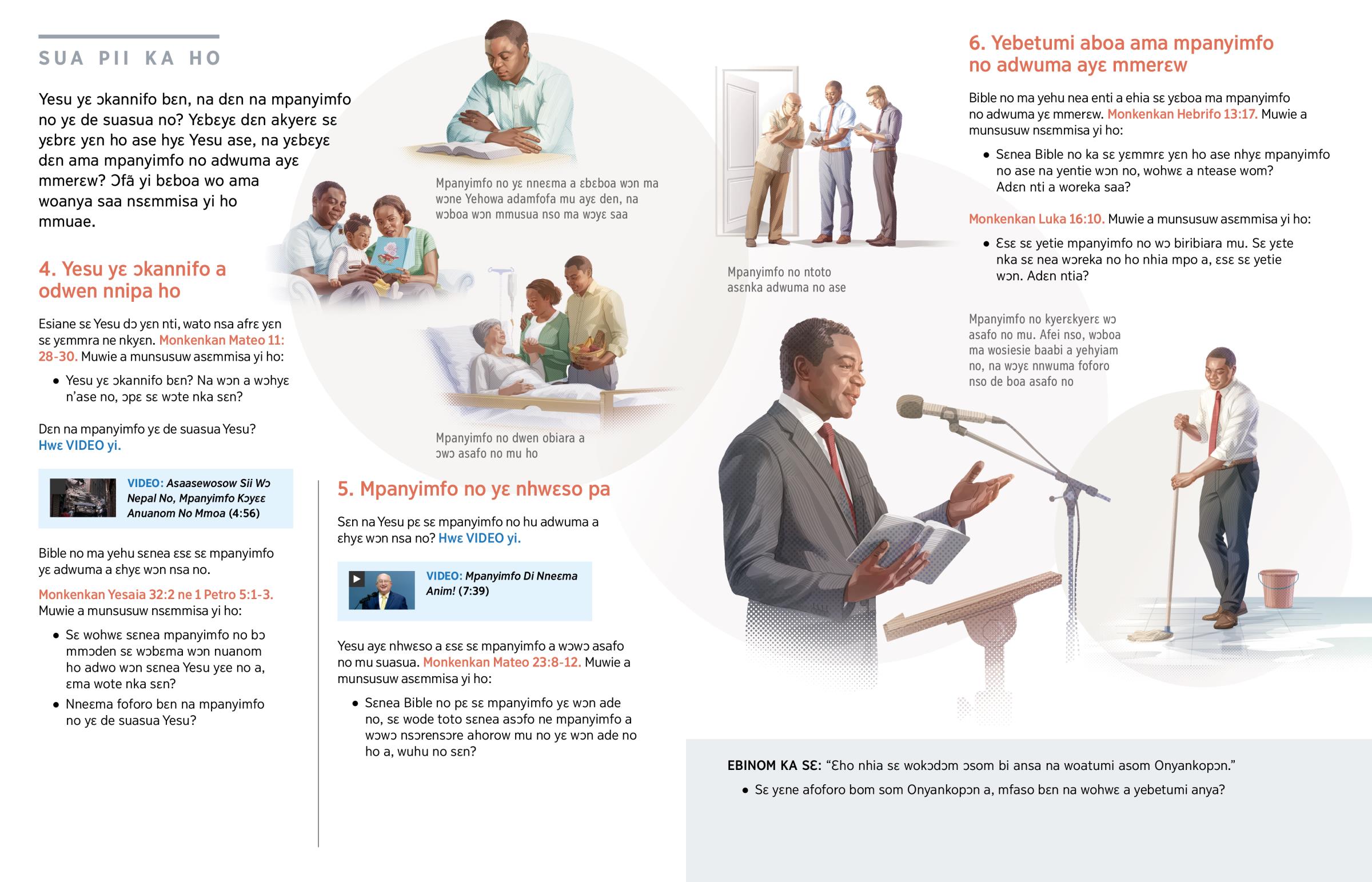 Yesu yɛ ɔkannifo bɛn, na dɛn na mpanyimfo no yɛ de suasua no? Yɛbɛyɛ dɛn akyerɛ sɛ yɛbrɛ yɛn ho ase hyɛ Yesu ase, na yɛbɛyɛ dɛn ama mpanyimfo no adwuma ayɛ mmerɛw? Ɔfã yi bɛboa wo ama woanya saa nsɛmmisa yi ho mmuae.
