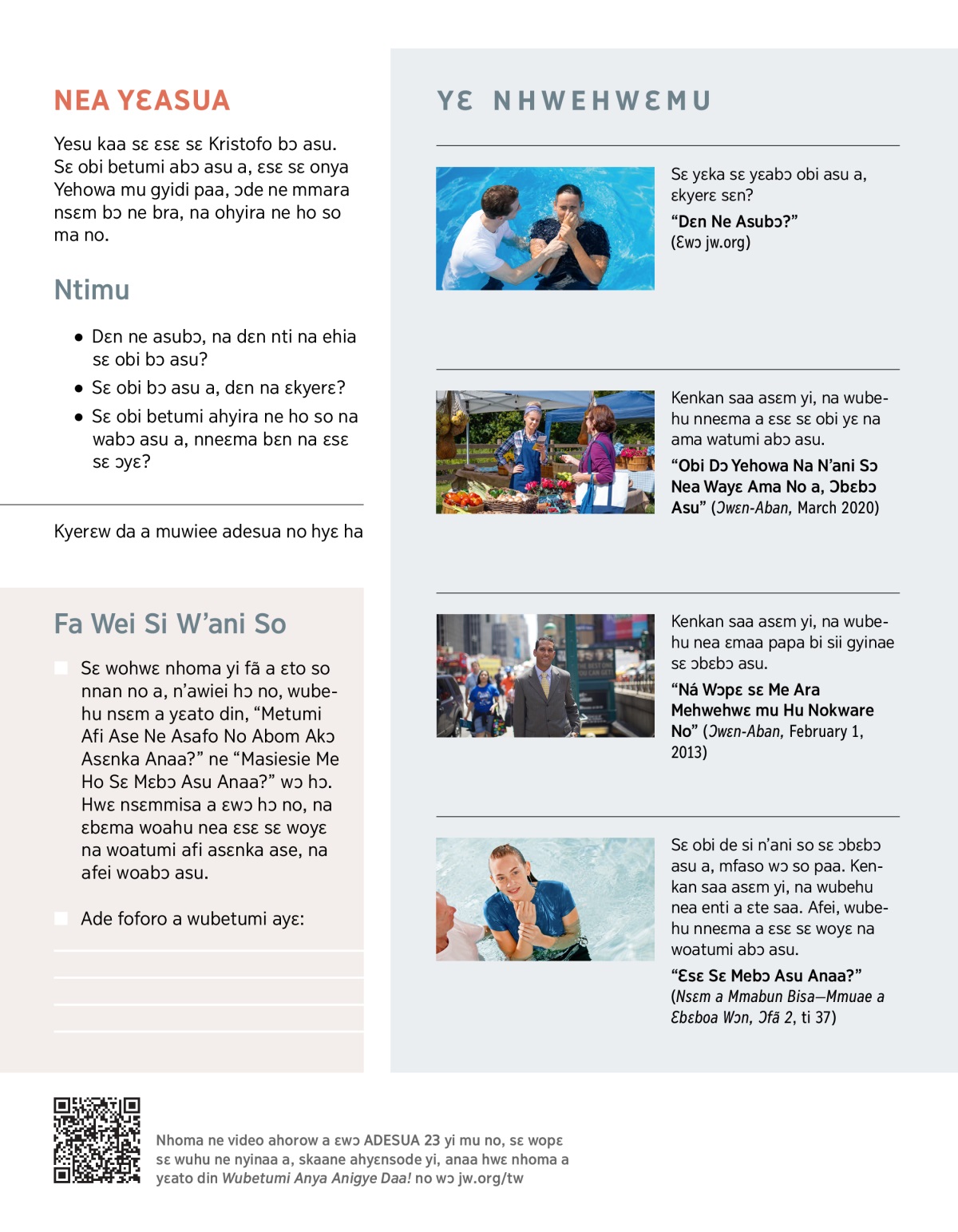 Hwɛ nea wubetumi asua afi Yesu asubɔ no mu ne nea obi yɛ a ɛbɛboa no ama watumi abɔ asu.