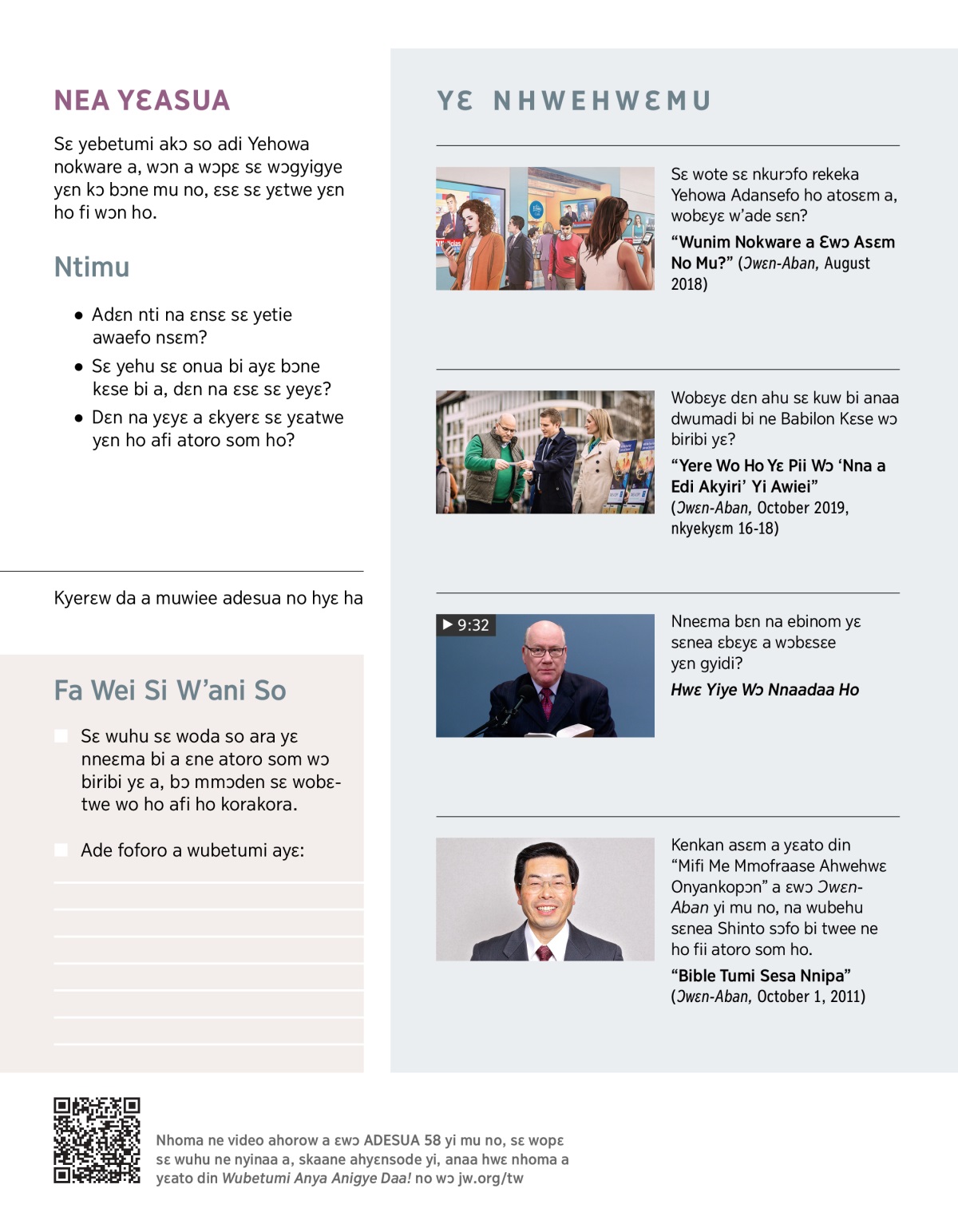 Gyinae biara a wubesi no, ma ɛnna adi sɛ wudi Yehowa nokware. Afei hwɛ sɛ, gyinae biara a wubesi no, ɛremma wo tiboa mmu wo fɔ.