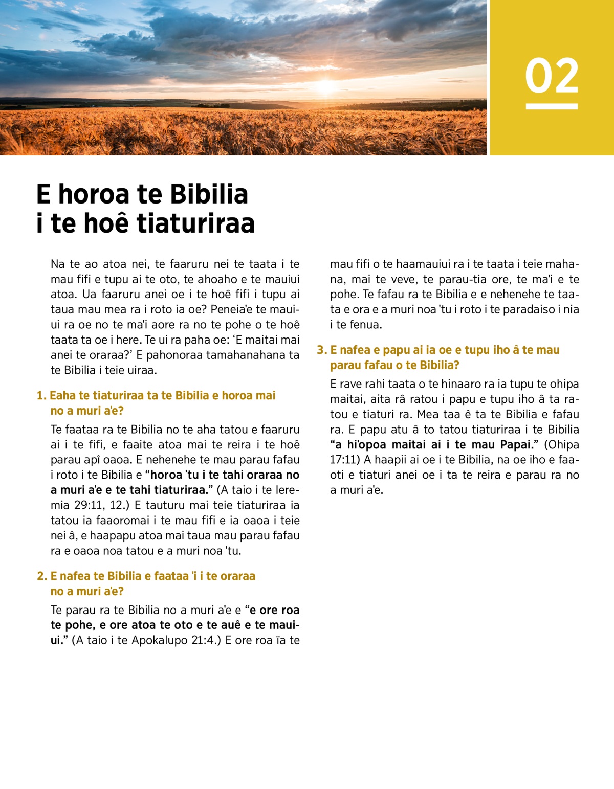 Ia ora oe e a muri noa ˈtu! (A haamata i te haapii i te Bibilia)