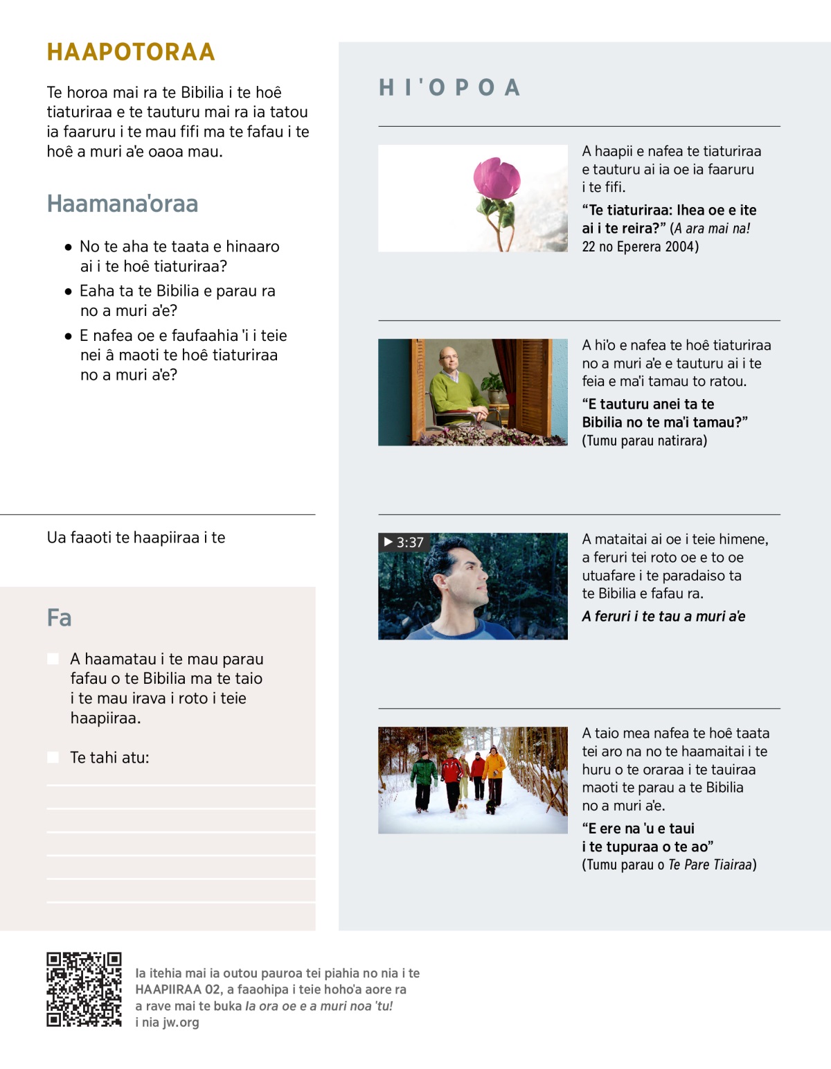 • Ia ora oe e a muri noa ˈtu! (Aparauraa Bibilia)