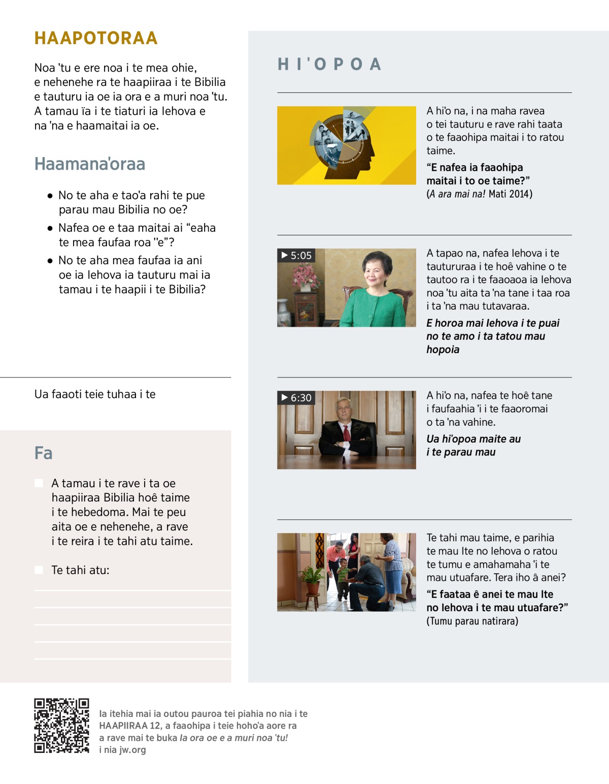 “E nafea ia faaohipa maitai i to oe taime?” (A ara mai na! Mati 2014)