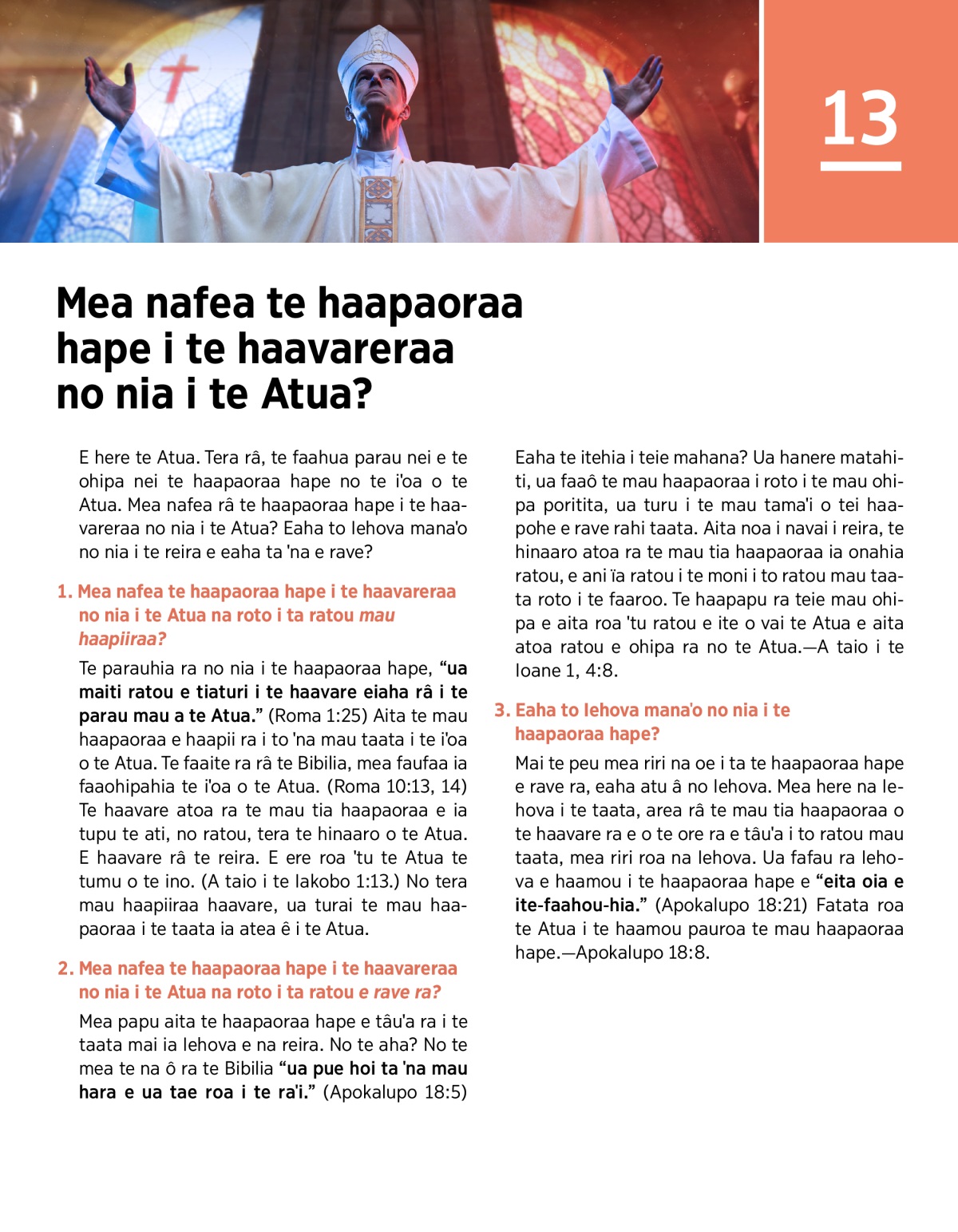 1. Mea nafea te haapaoraa hape i te haavareraa no nia i te Atua na roto i ta ratou mau haapiiraa?