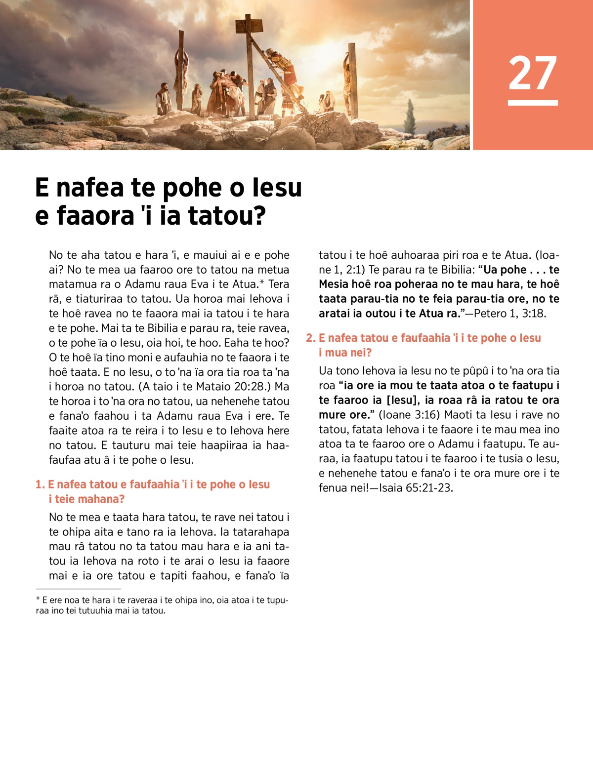 “Eaha ta Iesu i rave no te faaora ia tatou?” (Tumu parau natirara)