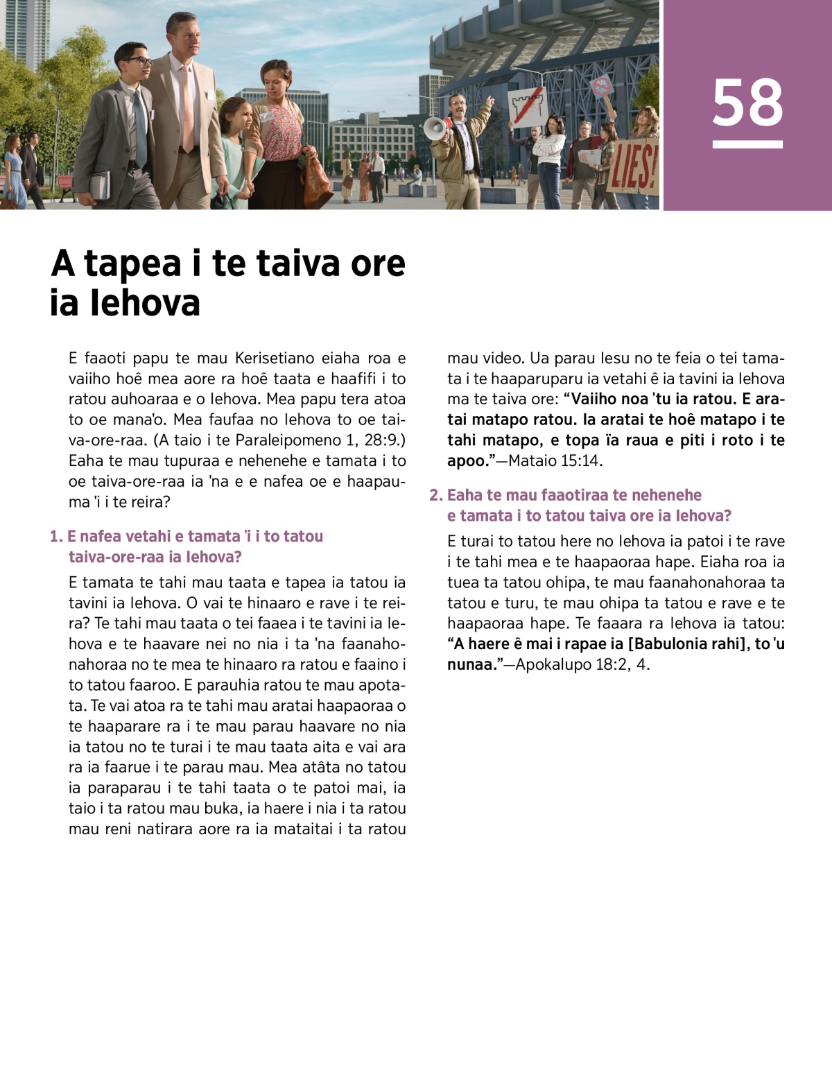 1. E nafea vetahi e tamata ˈi i to tatou taiva-ore-raa ia Iehova?