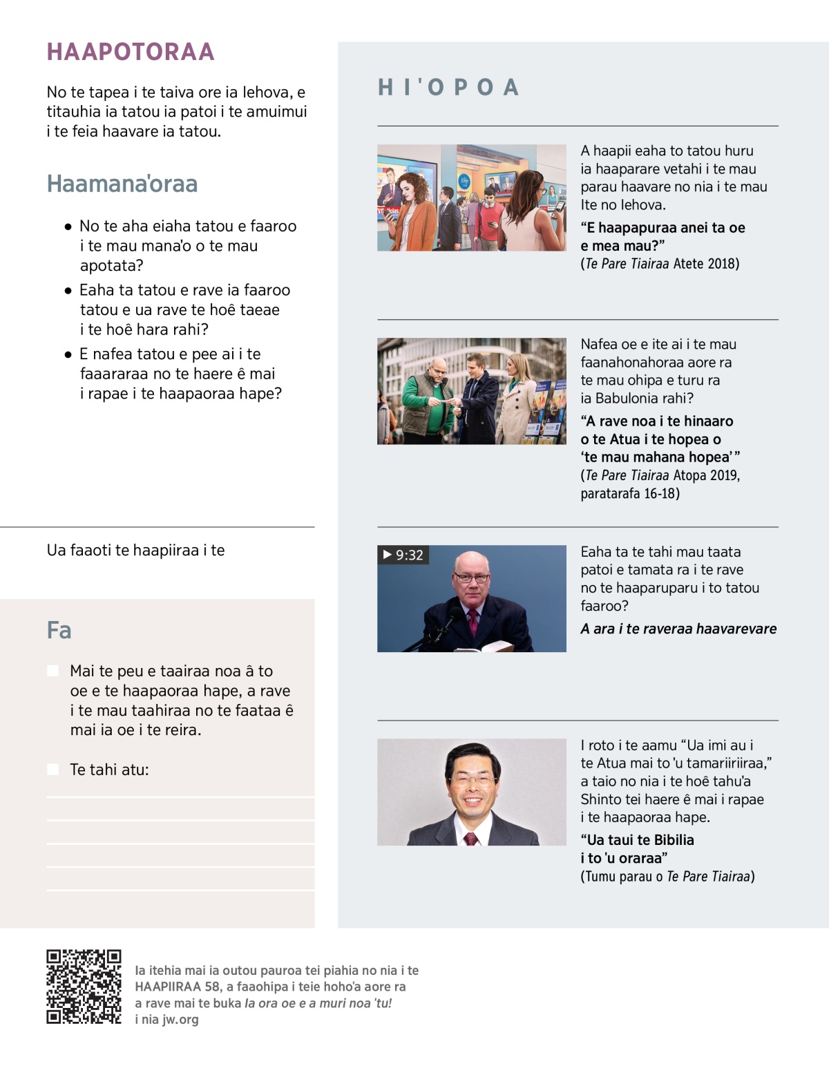 “Ua taui te Bibilia i to ˈu oraraa” (Tumu parau o Te Pare Tiairaa)