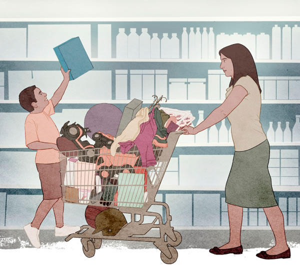 Що можете зробити ви. Проаналізуйте власне ставлення до грошей і речей. Чітко визначте пріоритети і допоможіть дітям зробити те саме. У вищезгаданій книжці «Епідемія нарцисизму» радиться: «Батьки і діти могли б обговорити такі питання:“Коли варто купувати речі на розпродажі? Коли цього не варто робити? Що таке відсоткова ставка? Коли ти останнього разу купував якусь річ, тому що до цього тебе спонукували інші?”»