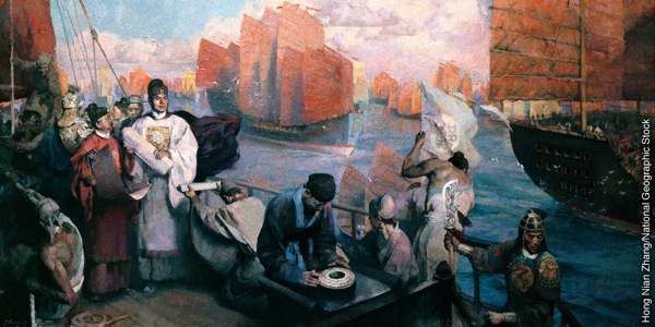 КИТАЙ — країна великих досягнень. Це одна з найбільших держав на землі, а за кількістю населення вона посідає перше місце у світі. Китайці здійснили грандіозний будівельний проект — звели Велику китайську стіну. А флот з величезних кораблів, збудованих за часів китайських імператорів з династії Мін, Юнле (Чжу Ді) і Сюаньде (Чжу Чжаньцзі), не мав рівних собі протягом ще п’ятиста років історії. Командувачем цього флоту був мусульманин з південно-західного Китаю, на ім’я Чжен Хе.