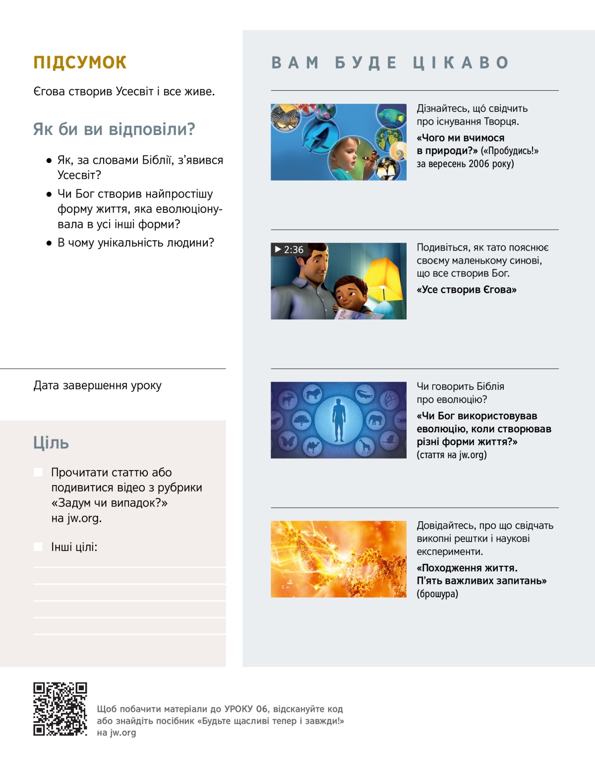 Багато статей і відео на цю тему ви знайдете на jw.org у рубриках «Задум чи випадок?» та «Погляди на походження життя».