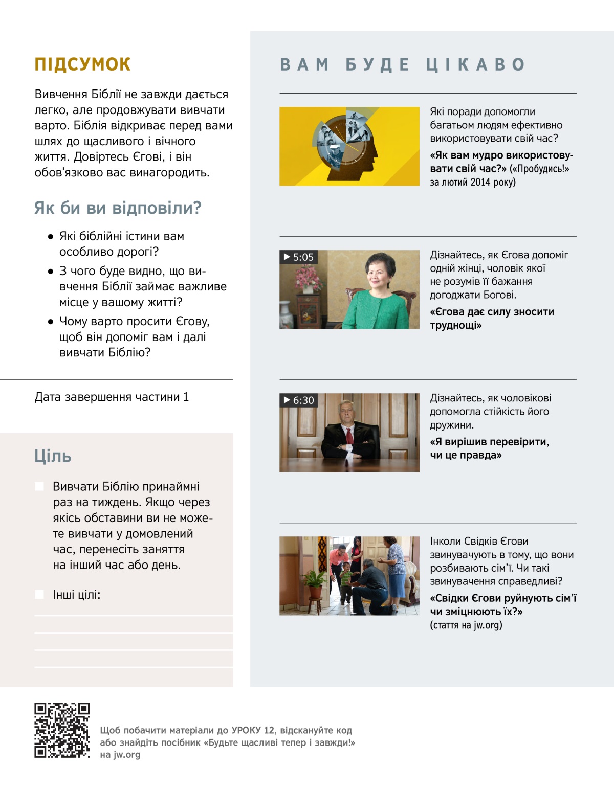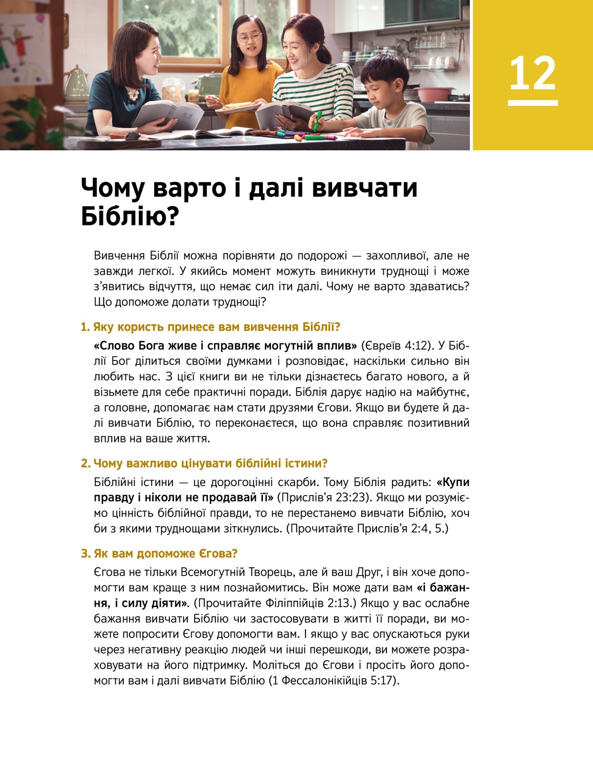 «Слово Бога живе і справляє могутній вплив» (Євреїв 4:12). У Біблії Бог ділиться своїми думками і розповідає, наскільки сильно він любить нас. З цієї книги ви не тільки дізнаєтесь багато нового, а й візьмете для себе практичні поради. Біблія дарує надію на майбутнє, а головне, допомагає нам стати друзями Єгови. Якщо ви будете й далі вивчати Біблію, то переконаєтеся, що вона справляє позитивний вплив на ваше життя.