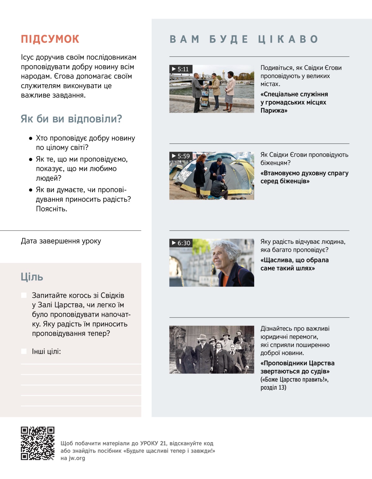 Свідки Єгови докладають чималих зусиль, щоб донести добру новину до кожного. Подивіться ВІДЕО і обговоріть запитання: