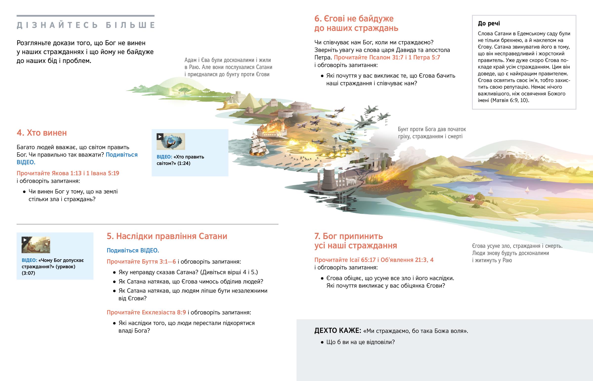 Відповідальність за зло і страждання лежить передусім на Сатані і першій людській парі. Єгові не байдуже до наших страждань. Невдовзі він їх припинить і усуне всі наслідки зла.