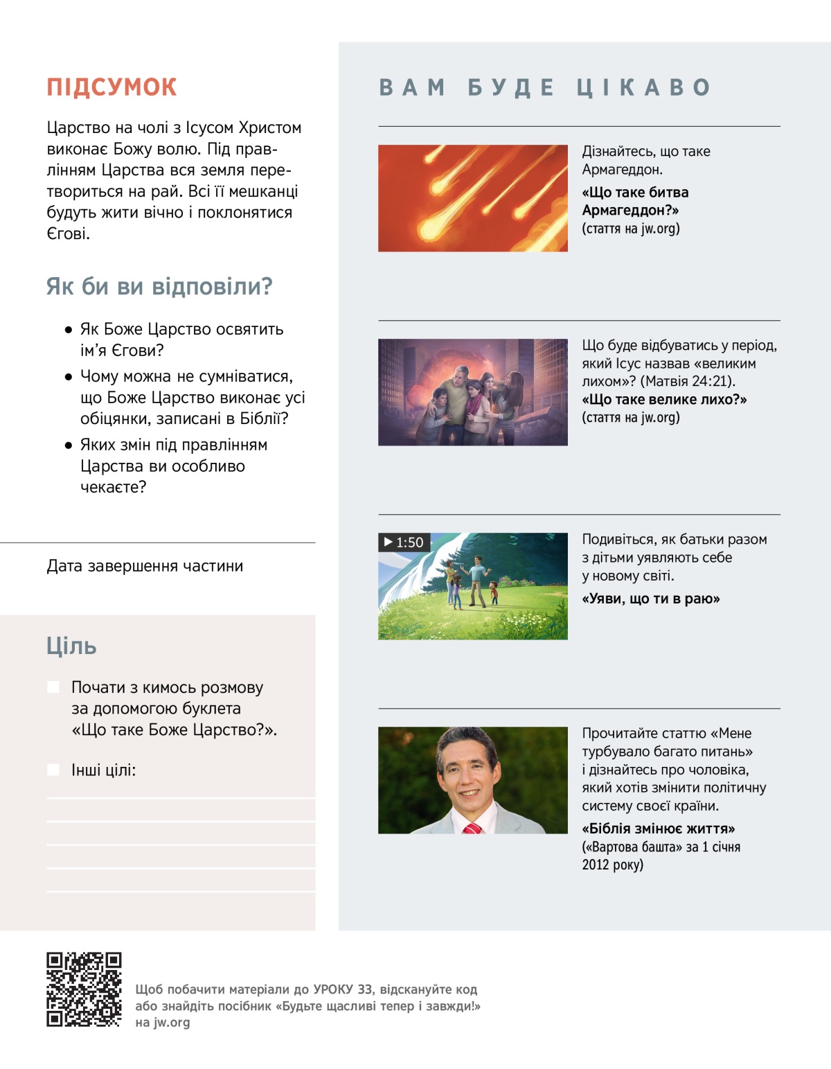 1. Що Боже Царство зробить для того, щоб на землі запанував мир і справедливість?