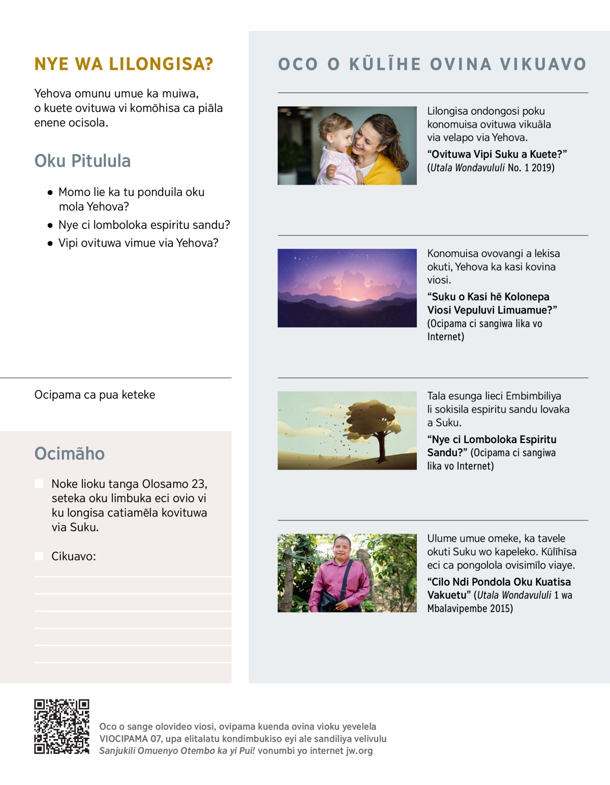 Yehova o situlula ovituwa viaye pocakati covina eye a lulika.