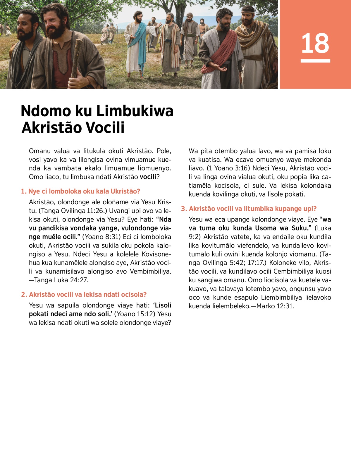 Akristão, olondonge ale oloñame via Yesu Kristu. (Tanga Ovilinga 11:26.) Uvangi upi ovo va lekisa okuti, olondonge via Yesu? Eye hati: “Nda vu pandikisa vondaka yange, vulondonge viange muẽle ocili.” (Yoano 8:31) Eci ci lomboloka okuti, Akristão vocili va sukila oku pokola kalongiso a Yesu. Ndeci Yesu a kolelele Kovisonehua kua kunamẽlele alongiso aye, Akristão vocili va kunamisilavo alongiso avo Vembimbiliya. —Tanga Luka 24:27.