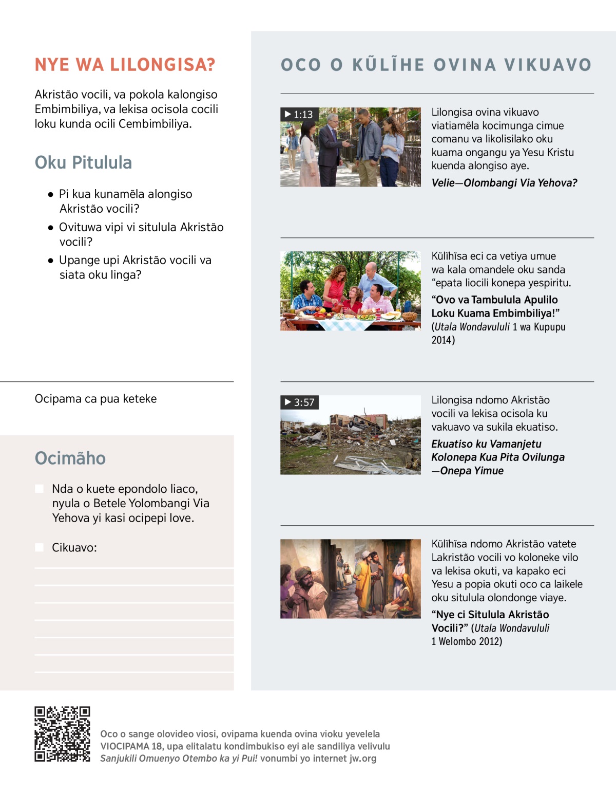 Valua va litukula okuti Akristão, havosiko va kapako ocili Cembimbiliya. Tala OVIDEO, noke konomuisa epulilo li kuãimo.