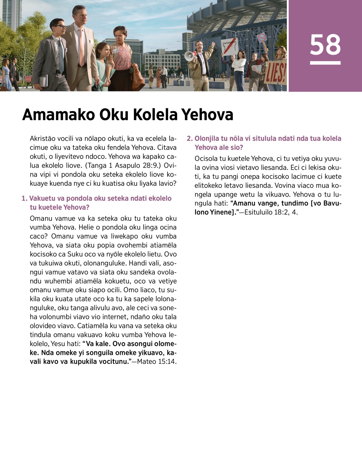 OMANU VAMUE VA POPIA VATI: “Ndi sukila oku kũlĩha eci olonanguluke vi kasi oku popia catiamẽla Kolombangi Via Yehova oco ndi teyuile ocili.”