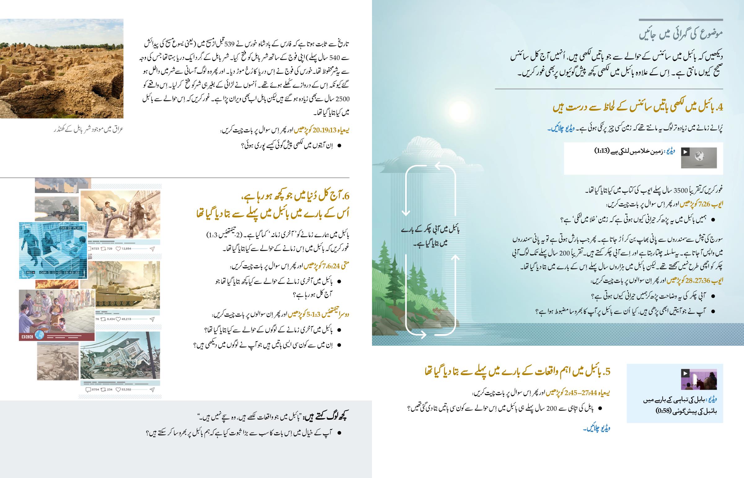 دیکھیں کہ بائبل میں سائنس کے حوالے سے جو باتیں لکھی ہیں، اُنہیں آجکل سائنس صحیح کیوں مانتی ہے۔ اِس کے علاوہ بائبل میں لکھی کچھ پیشگوئیوں پر بھی غور کریں۔