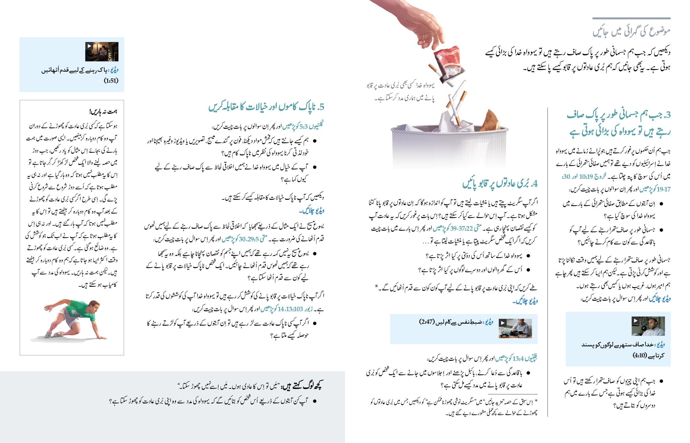 a اِس سبق کے حصہ ”مزید جانیں“ میں ”سگریٹنوشی چھوڑنا ممکن ہے“ کو دیکھیں جس میں بُری عادتوں کو چھوڑنے کے حوالے سے کچھ عملی مشورے دیے گئے ہیں۔