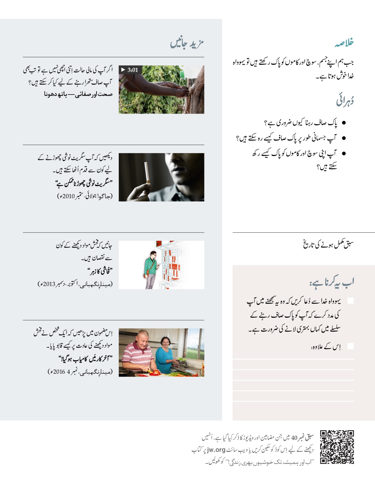 دیکھیں کہ جب ہم جسمانی طور پر پاک صاف رہتے ہیں تو یہوواہ خدا کی بڑائی کیسے ہوتی ہے۔ یہ بھی جانیں کہ ہم بُری عادتوں پر قابو کیسے پا سکتے ہیں۔