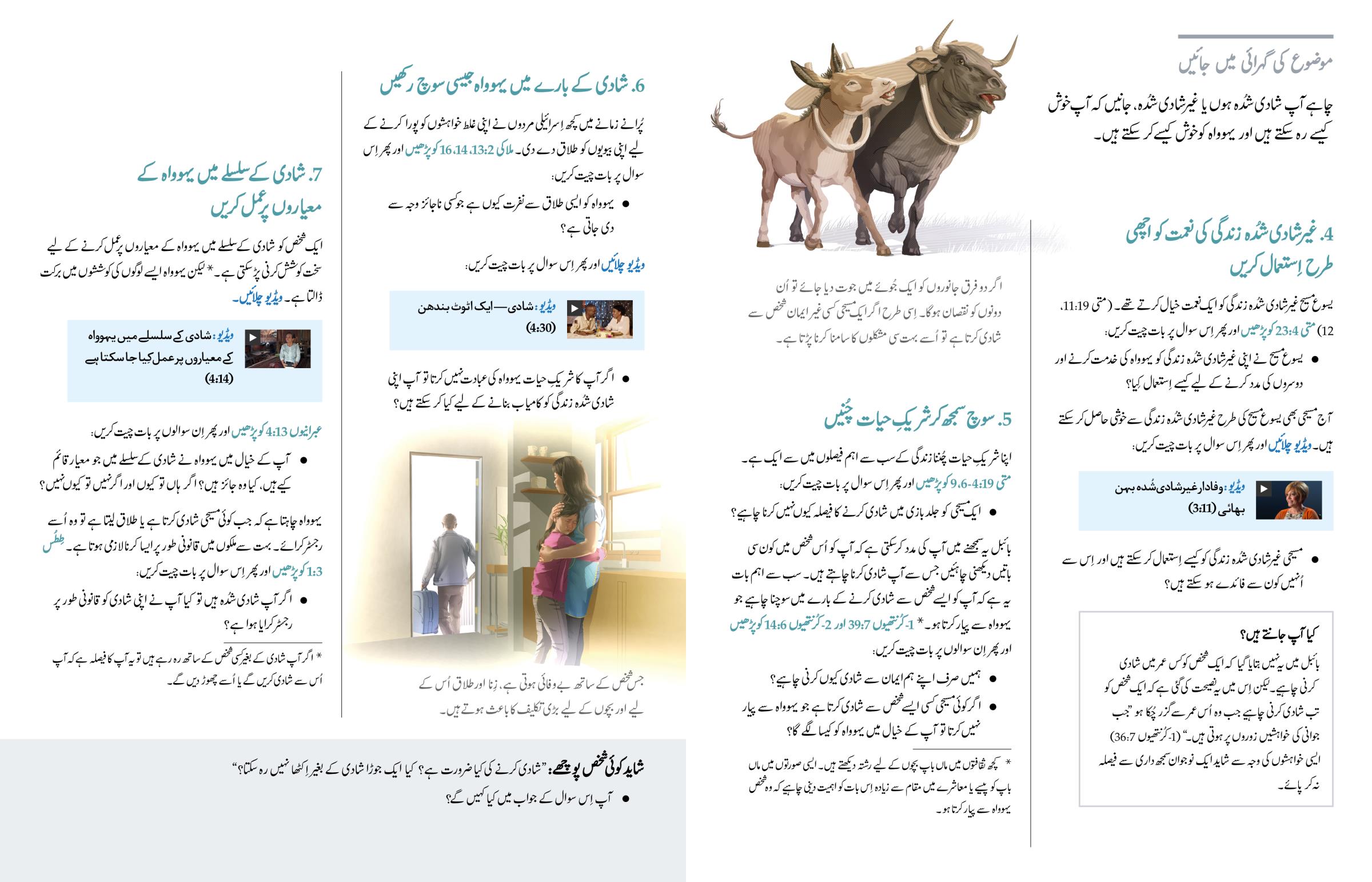 اگر دو فرق جانوروں کو ایک جُوئے میں جوت دیا جائے تو اُن دونوں کو نقصان ہوگا۔ اِسی طرح اگر ایک مسیحی کسی غیرایمان شخص سے شادی کرتا ہے تو اُسے بہت سی مشکلوں کا سامنا کرنا پڑتا ہے۔