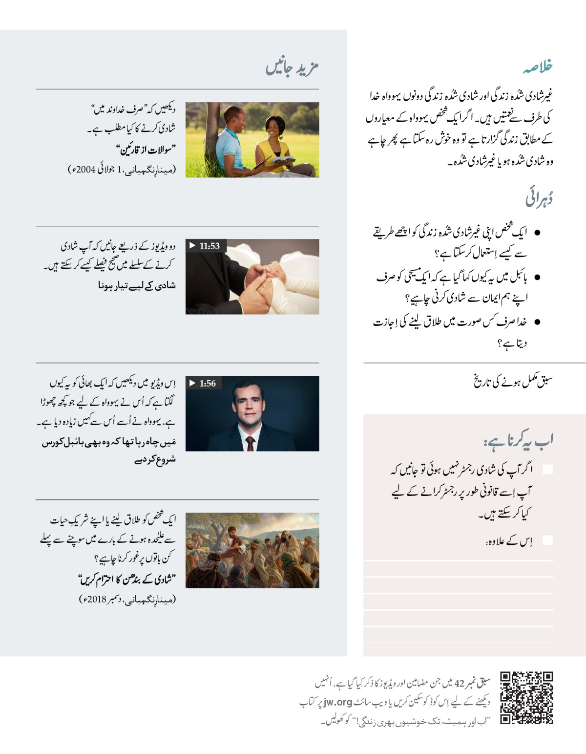 a یہ جاننے کے لیے کہ زِناکاری کے علاوہ ایسی کون سی صورتحال ہو سکتی ہیں جن میں ایک مسیحی کو اپنے شریکِحیات سے علیٰحدہ ہونا پڑ سکتا ہے، کتاب کے آخر میں نکتہ نمبر 4 کو دیکھیں۔
