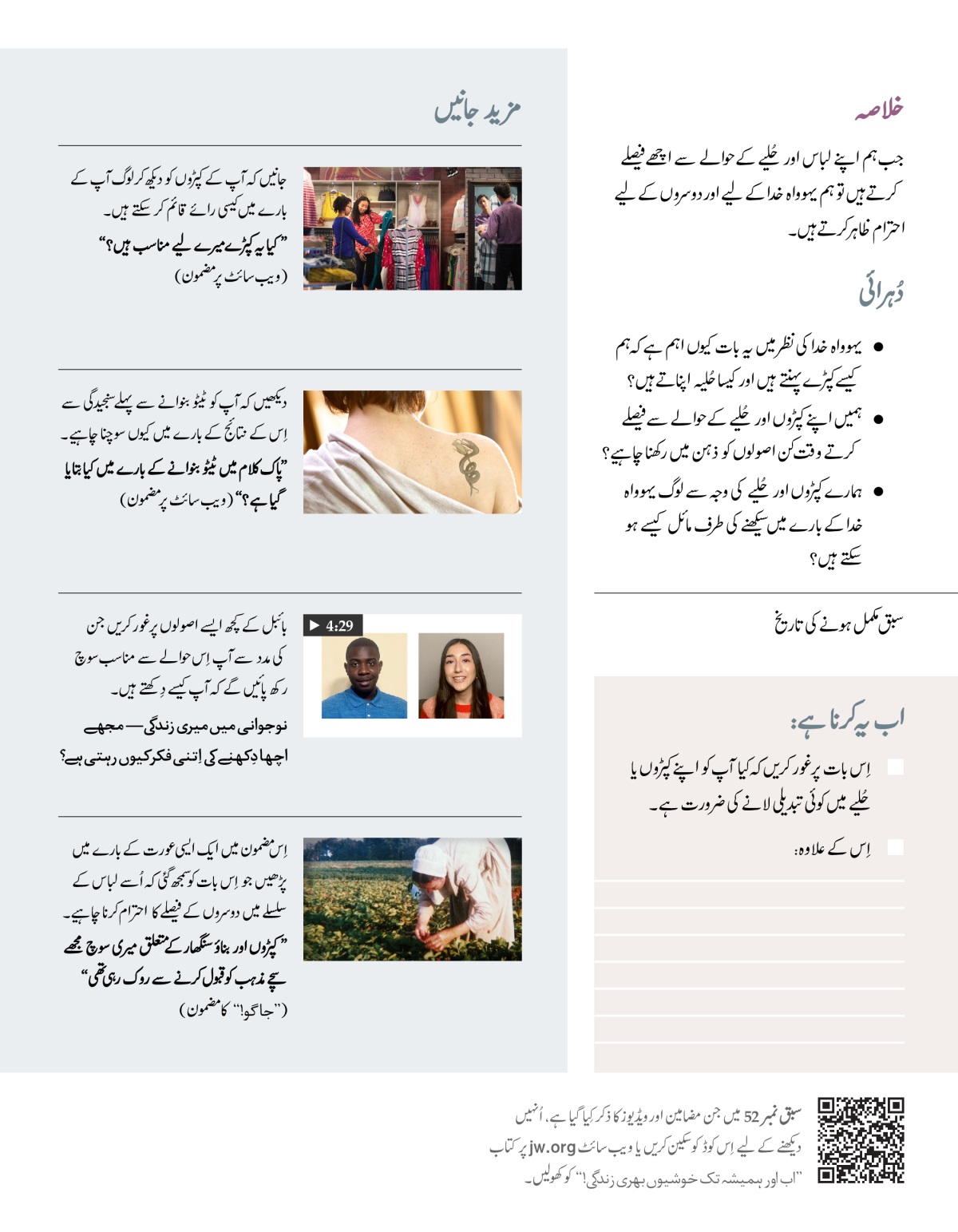 غور کریں کہ ہم کیا کر سکتے ہیں تاکہ ہمارا لباس اور حُلیہ ہمیشہ خدا کے معیاروں کے مطابق ہو۔