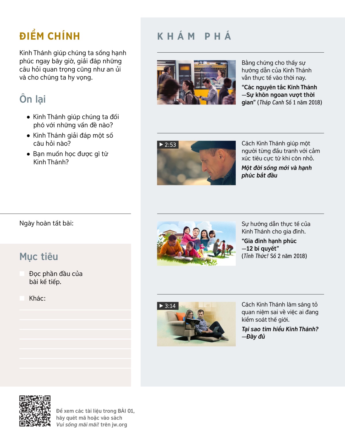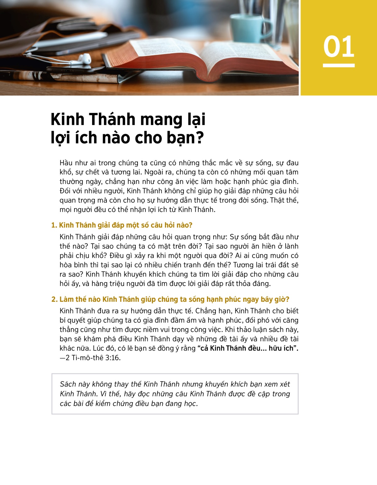 Sách này không thay thế Kinh Thánh nhưng khuyến khích bạn xem xét Kinh Thánh. Vì thế, hãy đọc những câu Kinh Thánh được đề cập trong các bài để kiểm chứng điều bạn đang học.