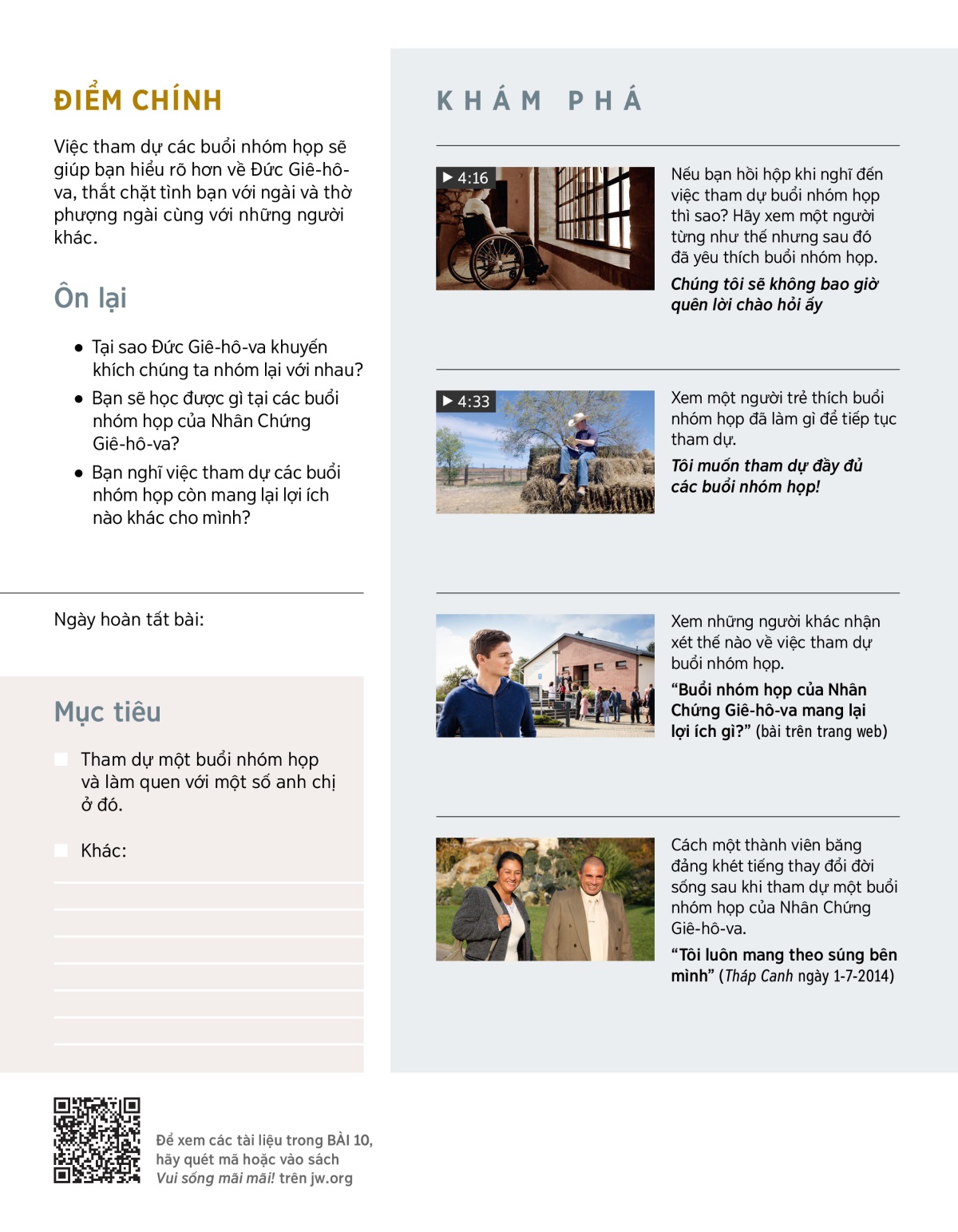Hãy tìm hiểu xem buổi nhóm họp của Nhân Chứng Giê-hô-va diễn ra như thế nào và tại sao việc cố gắng tham dự là đáng công.