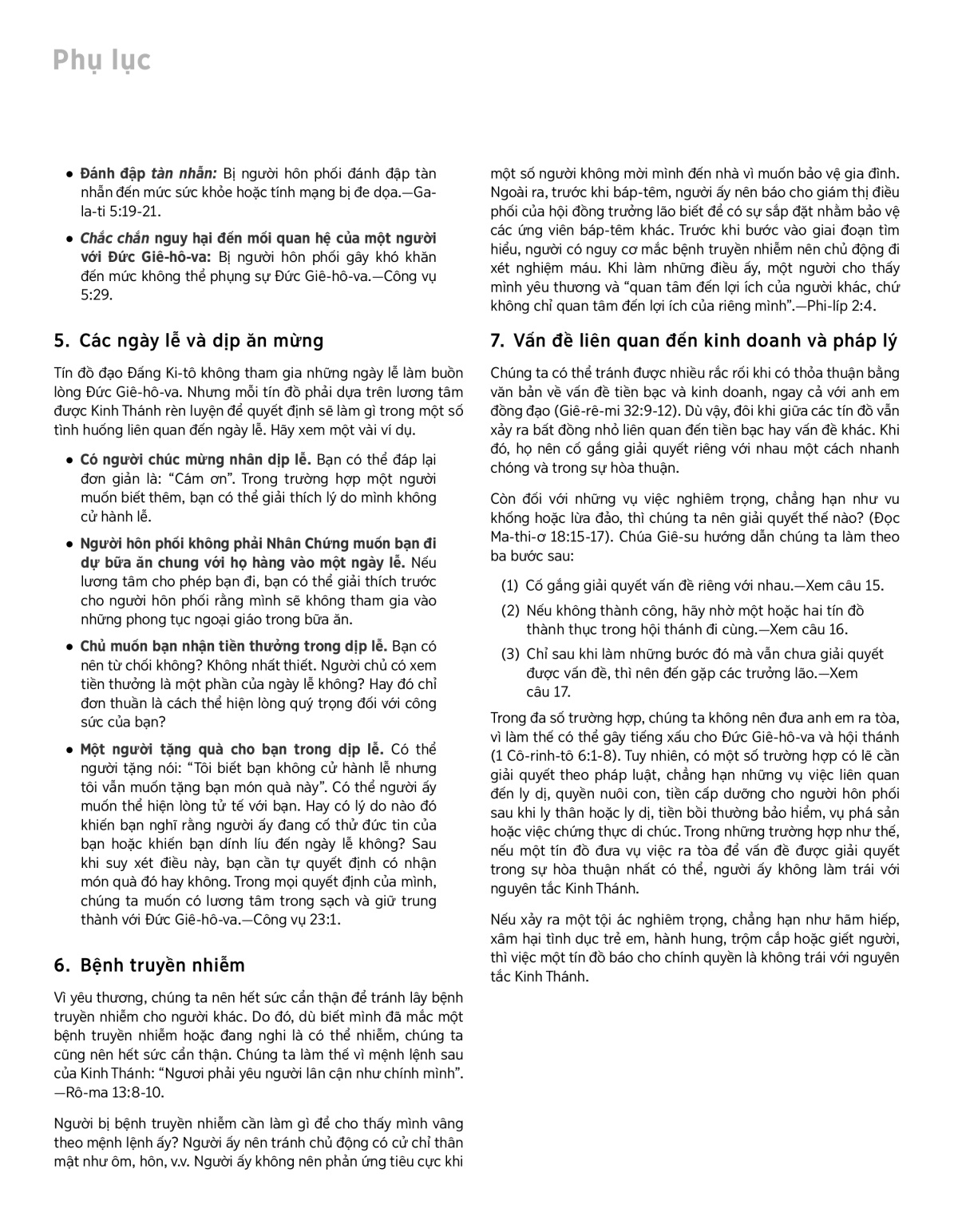 Người hôn phối không phải Nhân Chứng muốn bạn đi dự bữa ăn chung với họ hàng vào một ngày lễ. Nếu lương tâm cho phép bạn đi, bạn có thể giải thích trước cho người hôn phối rằng mình sẽ không tham gia vào những phong tục ngoại giáo trong bữa ăn.