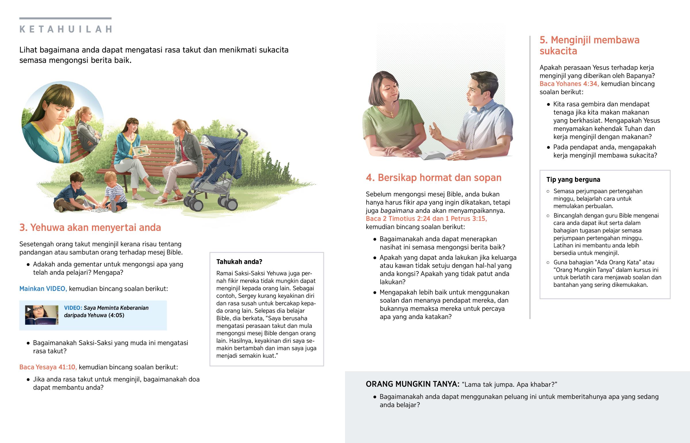 Selepas mempelajari kebenaran Bible, anda mungkin fikir, “Orang lain pun perlu tahu hal-hal ini!” Tapi anda mungkin takut untuk kongsi apa yang anda belajar. Mari lihat cara untuk mengatasi perasaan takut dan menikmati sukacita semasa menginjil.