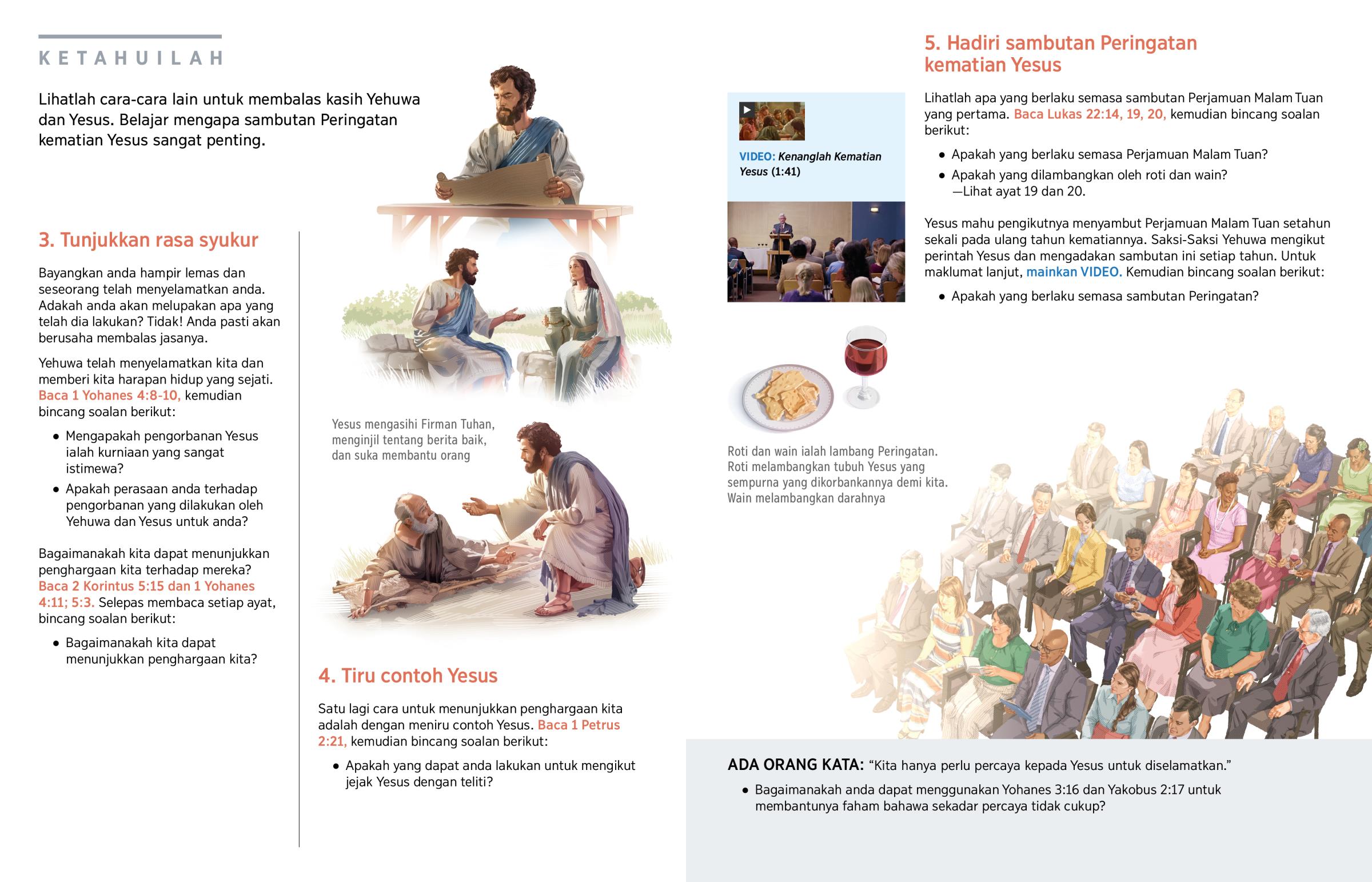 Lihatlah cara-cara lain untuk membalas kasih Yehuwa dan Yesus. Belajar mengapa sambutan Peringatan kematian Yesus sangat penting.