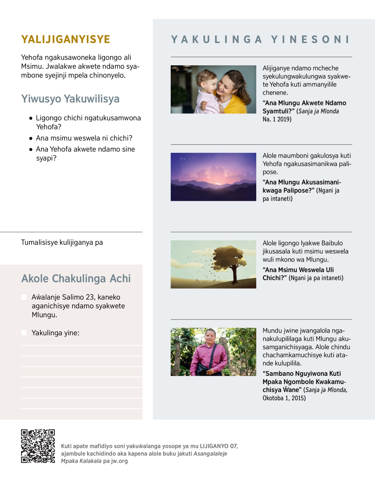 Ana akuganisya kuti Yehofa akusiŵasamalila ŵandu? Ana jwalakwe mpaka akombole kutenda yeleyi? Ligongo chichi akwanga myoyo?