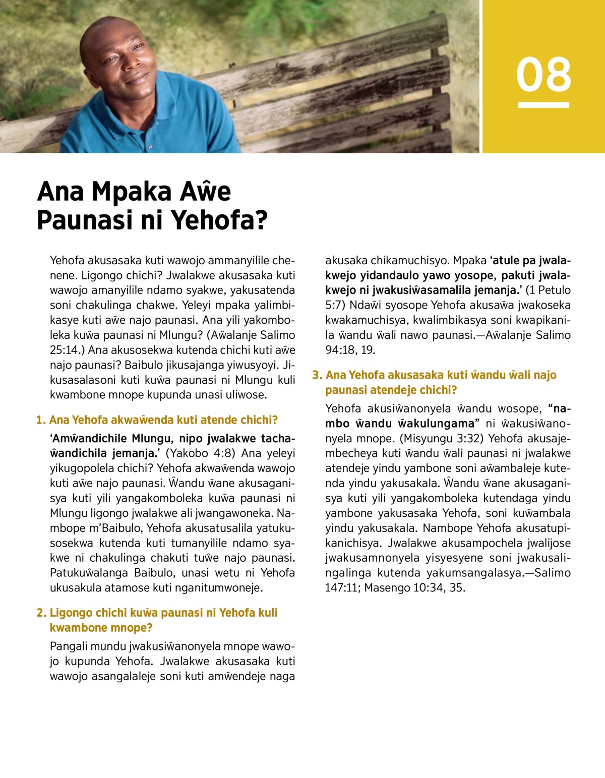 Yehofa akusiŵakamuchisya ŵandu ŵali paunasi ni jwalakwe kuti apilileje yakusawusya. Alolele FIDIYO, kaneko akambilane chiwusyo achi.