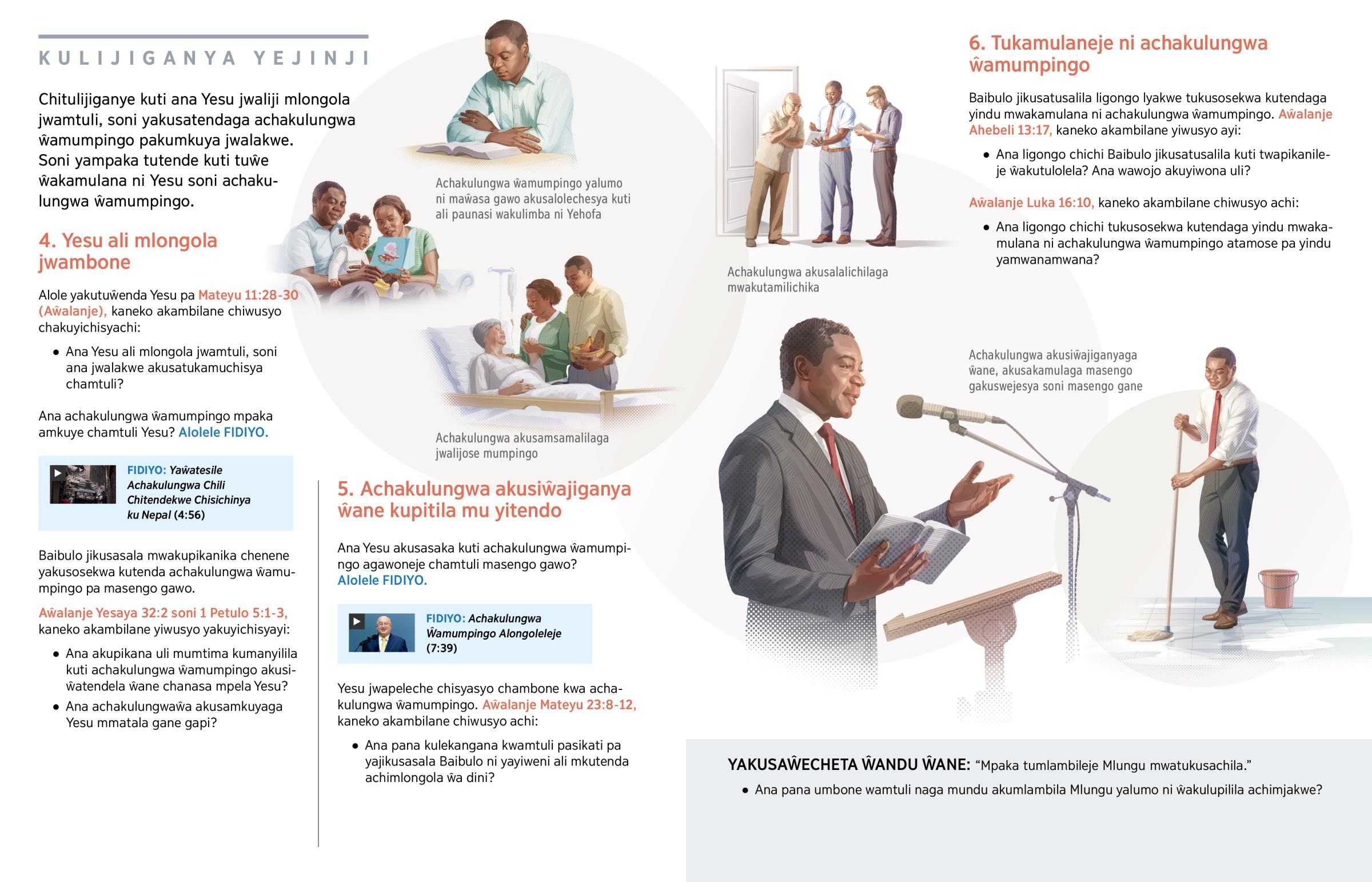Chitulijiganye kuti ana Yesu jwaliji mlongola jwamtuli, soni yakusatendaga achakulungwa ŵamumpingo pakumkuya jwalakwe. Soni yampaka tutende kuti tuŵe ŵakamulana ni Yesu soni achakulungwa ŵamumpingo.