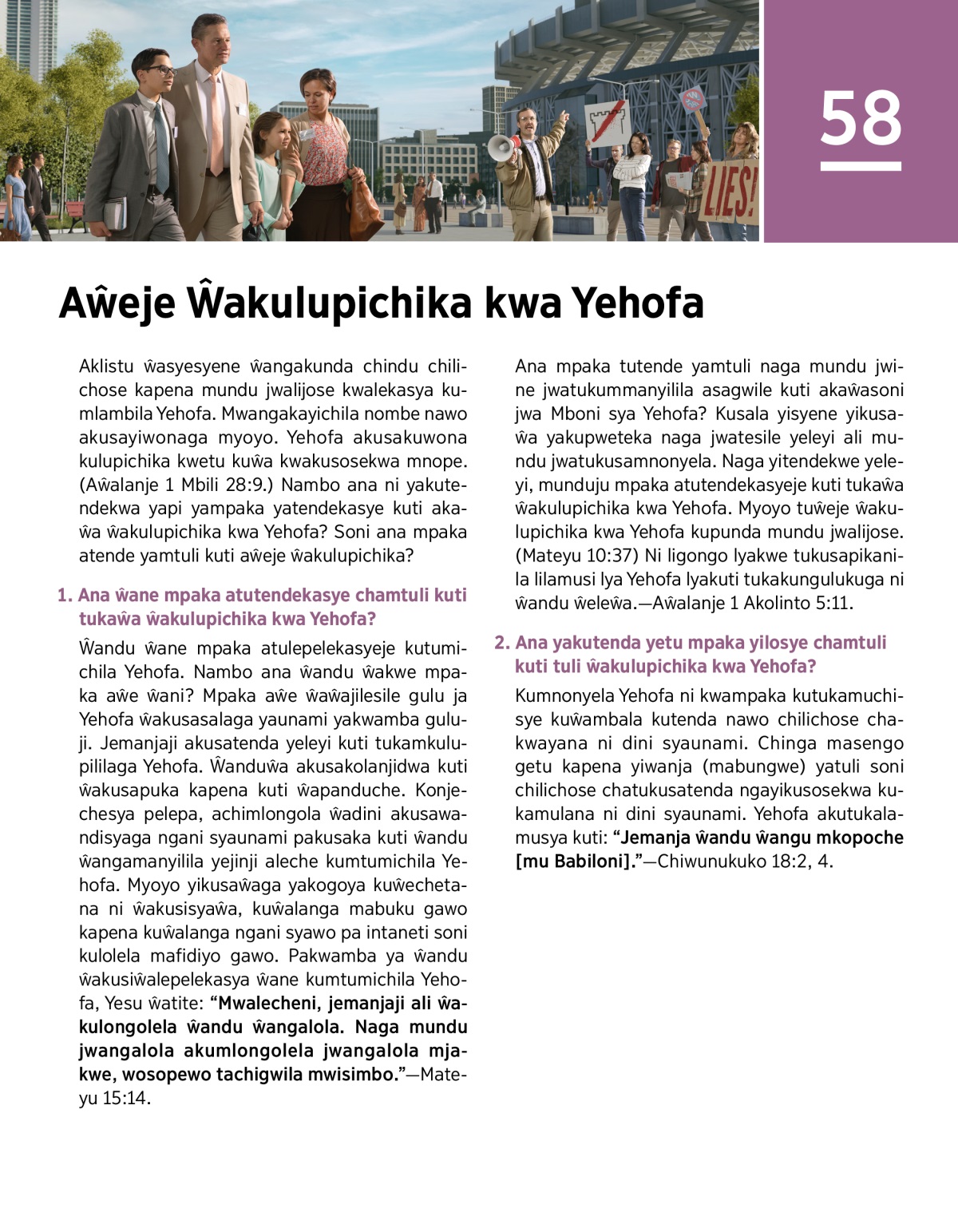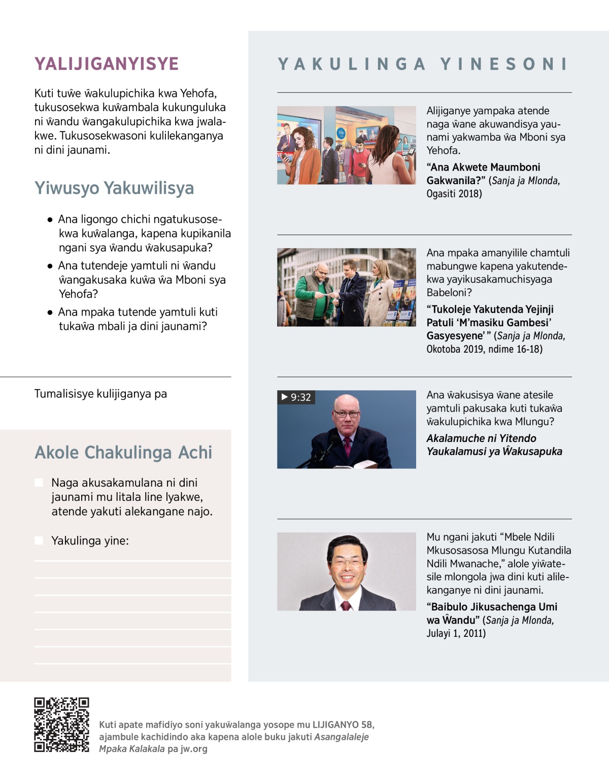 YAKUSAŴECHETA ŴANDU ŴANE: “Kuti nawuchenjeleje usyesyene, ngusosekwa kumanyilila yakusaŵecheta ŵakusapuka pakwamba ya ŵa Mboni sya Yehofa.”