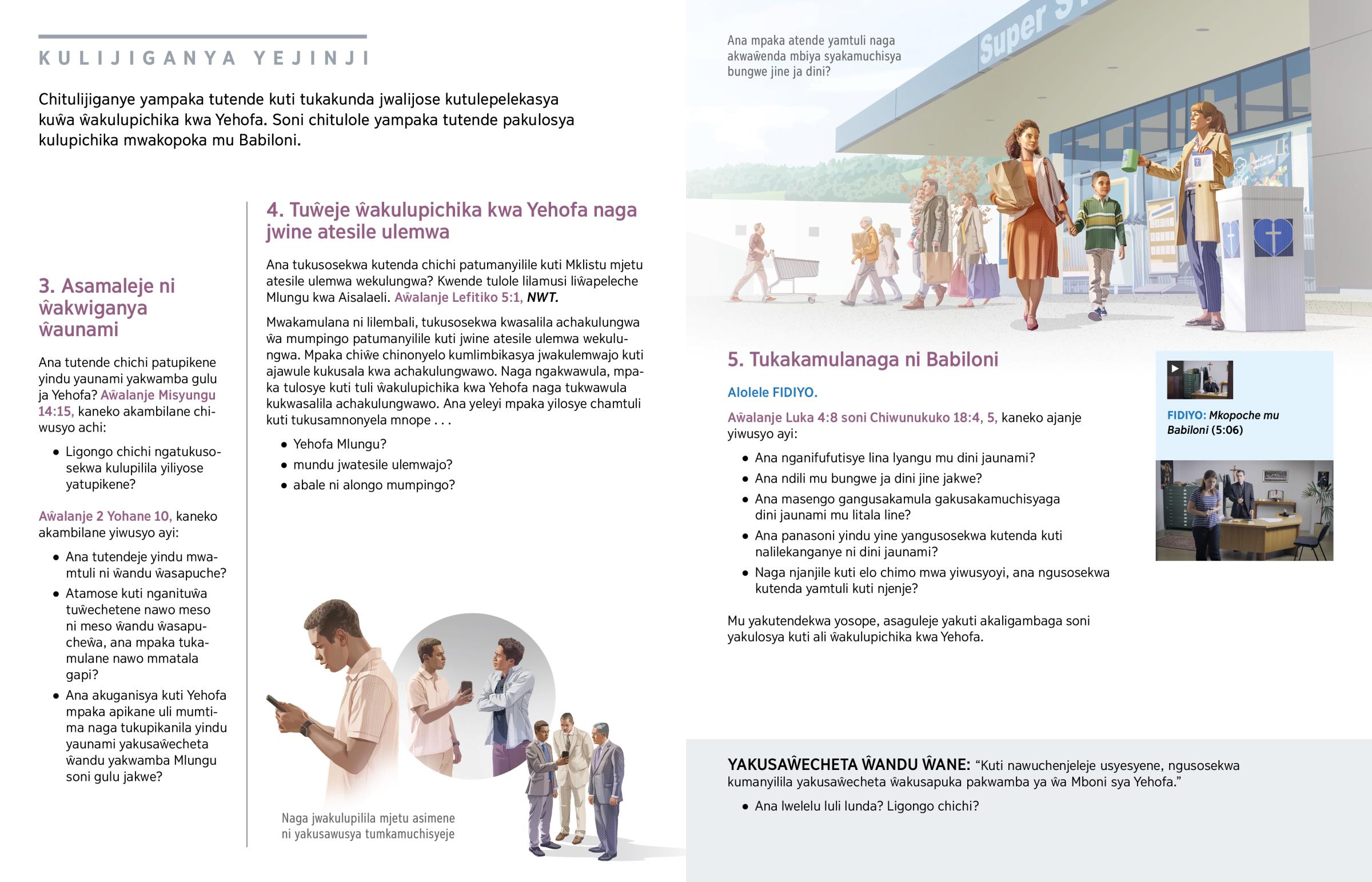 Chitulijiganye yampaka tutende kuti tukakunda jwalijose kutulepelekasya kuŵa ŵakulupichika kwa Yehofa. Soni chitulole yampaka tutende pakulosya kulupichika mwakopoka mu Babiloni.