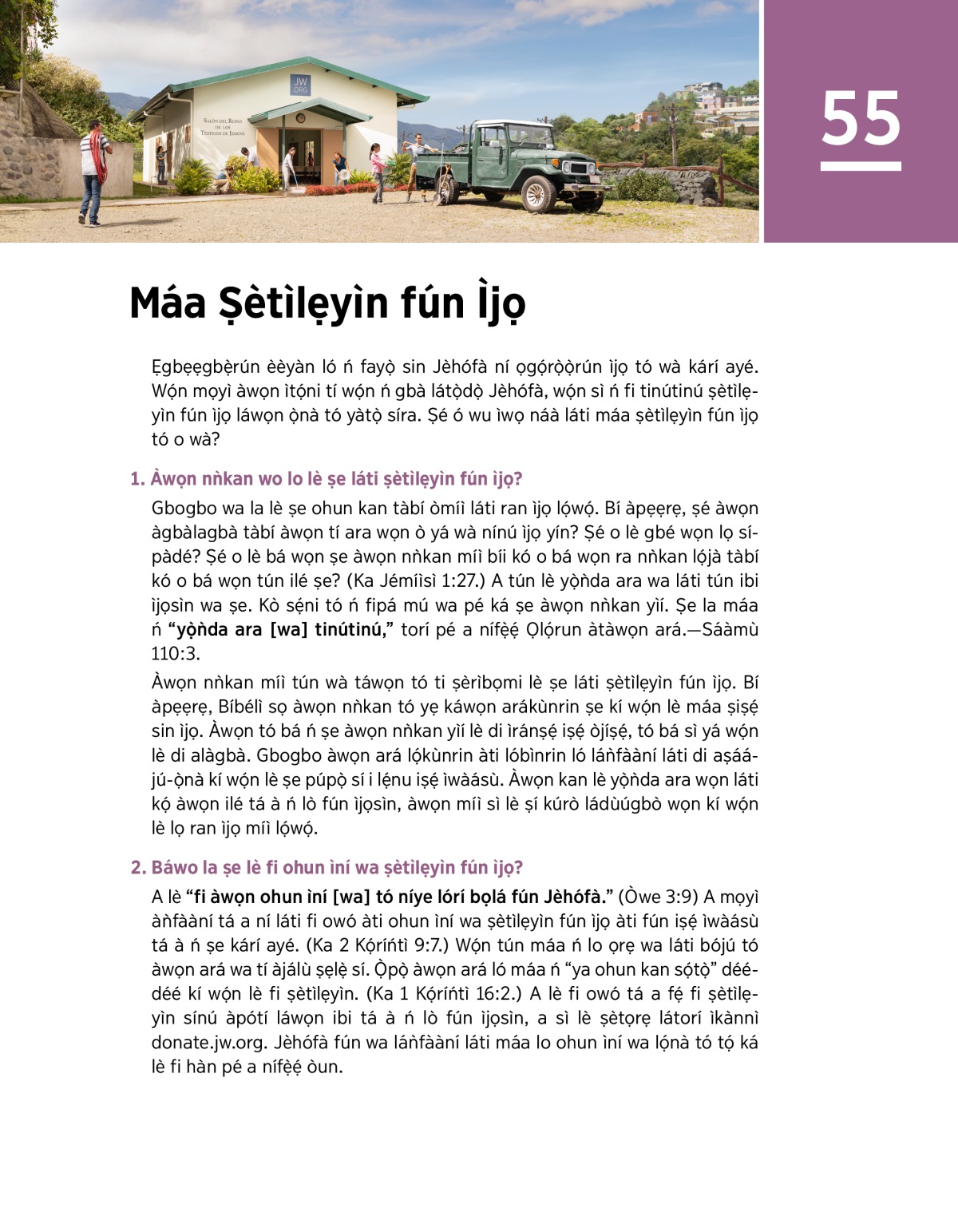 Ẹ̀kọ́ 55. Àwọn ará lọ́kùnrin àti lóbìnrin ń ṣiṣẹ́ ní ìta ilé ìpàdé wọn.