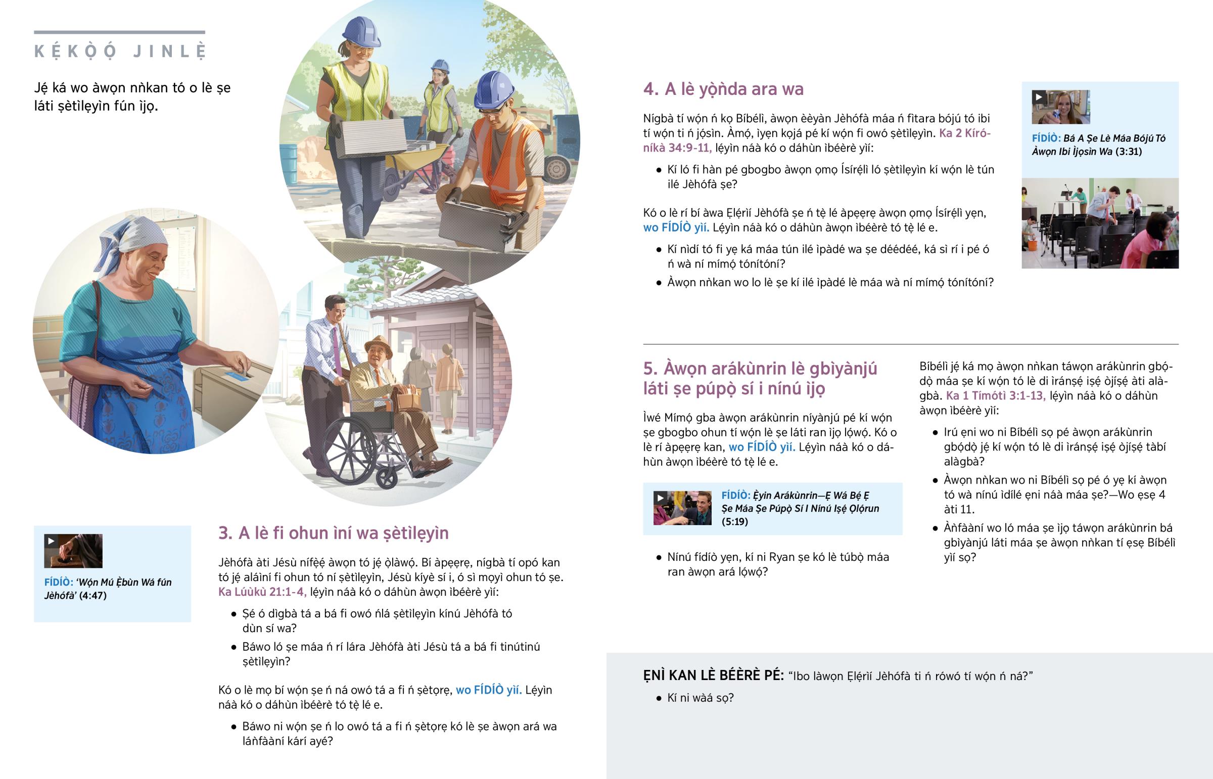 • Báwo la ṣe lè lo okun àti àkókò wa láti ṣètìlẹyìn fún ìjọ?