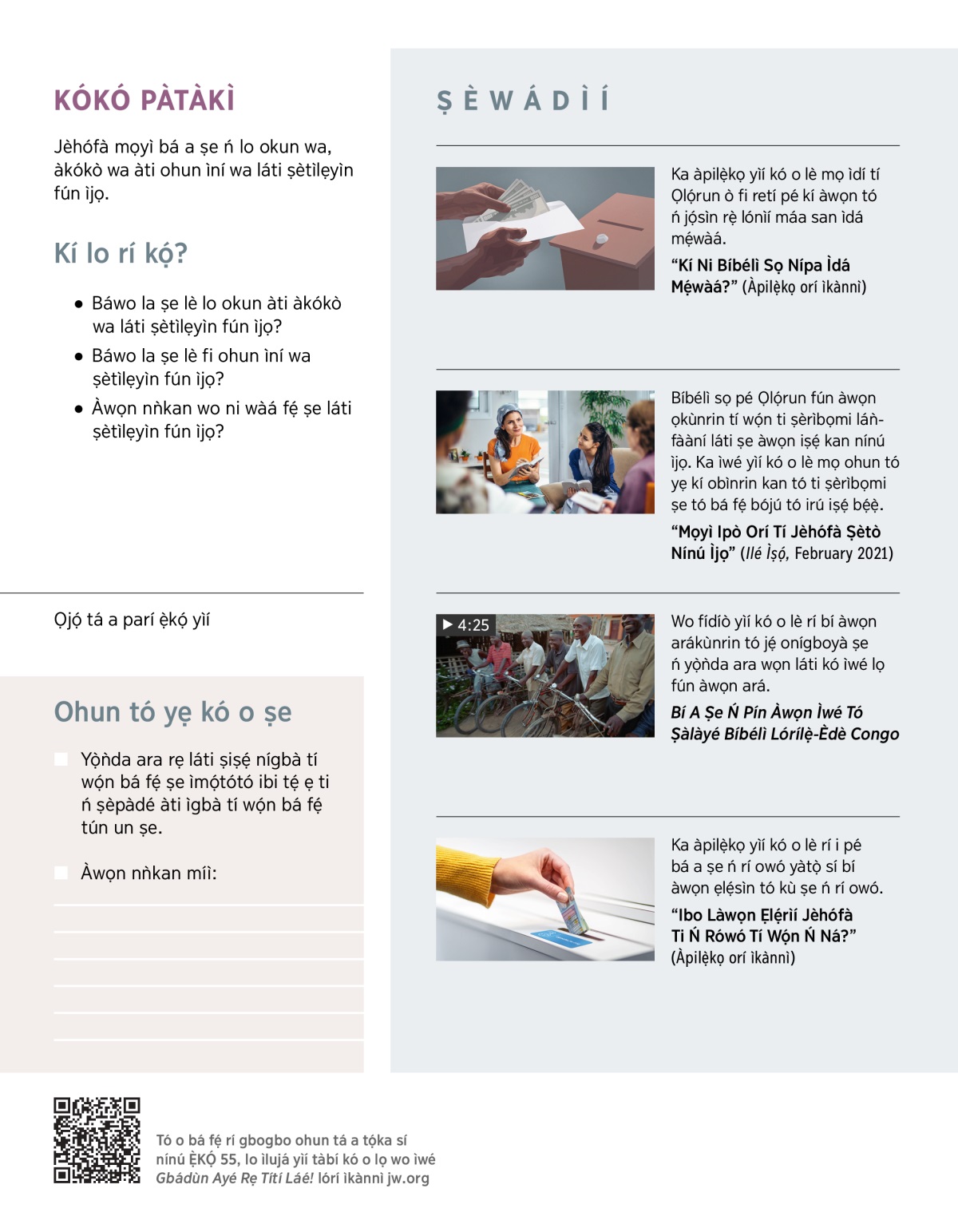1. Àwọn nǹkan wo lo lè ṣe láti ṣètìlẹyìn fún ìjọ?