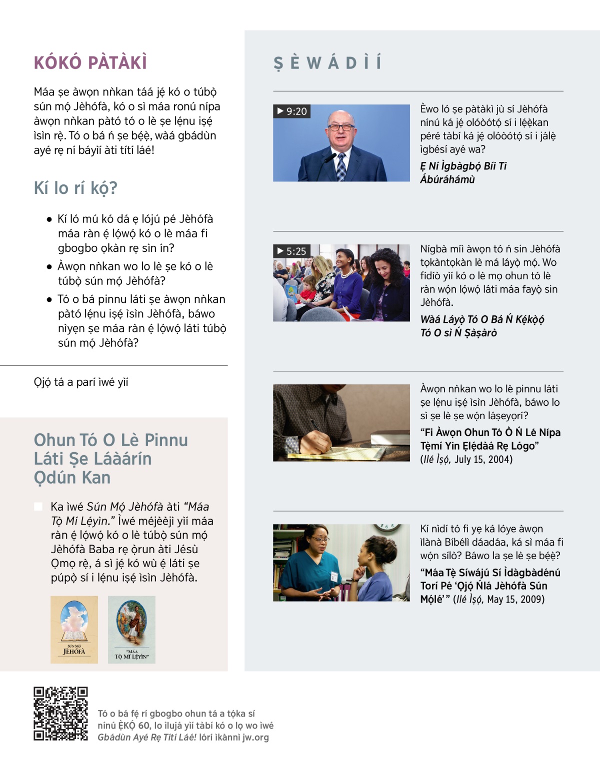 Nígbà míì àwọn tó ń sin Jèhófà tọkàntọkàn lè má láyọ̀ mọ́. Wo fídíò yìí kó o lè mọ ohun tó lè ràn wọ́n lọ́wọ́ láti máa fayọ̀ sin Jèhófà.