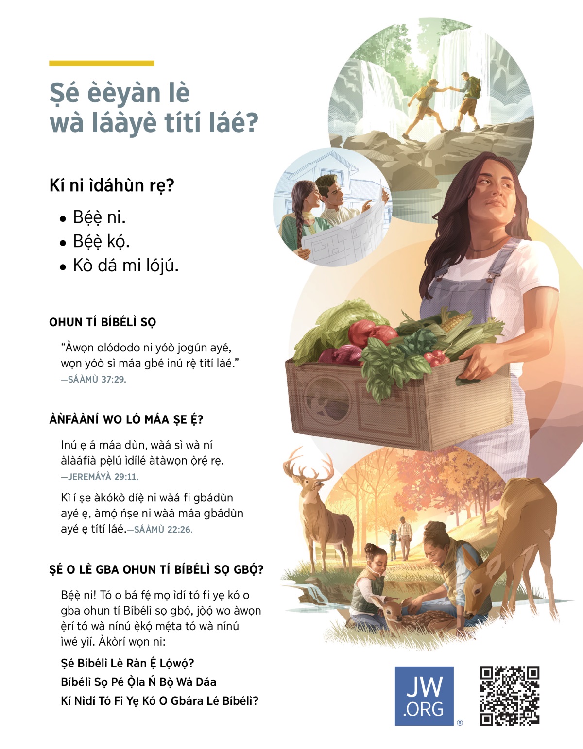 Kì í ṣe àkókò díẹ̀ ni wàá fi gbádùn ayé ẹ, àmọ́ ńṣe ni wàá máa gbádùn ayé ẹ títí láé.—SÁÀMÙ 22:26.