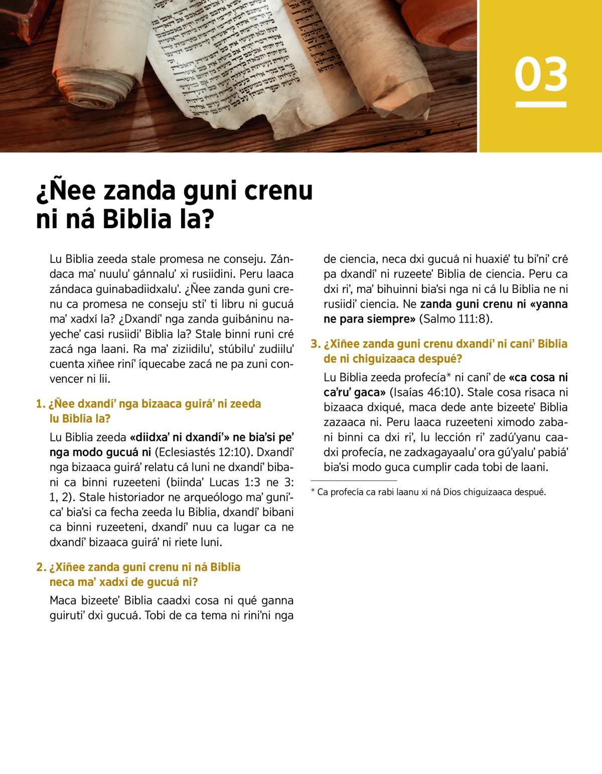 Casi ruzeeteʼ Biblia, ¿ximodo zaca ca binni ni guibani ca últimu dxi riʼ?
