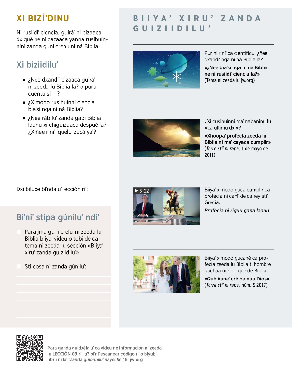 «¿Ñee biaʼsi nga ni ná Biblia ne ni rusiidiʼ ciencia la?» (Tema ni zeeda lu jw.org)