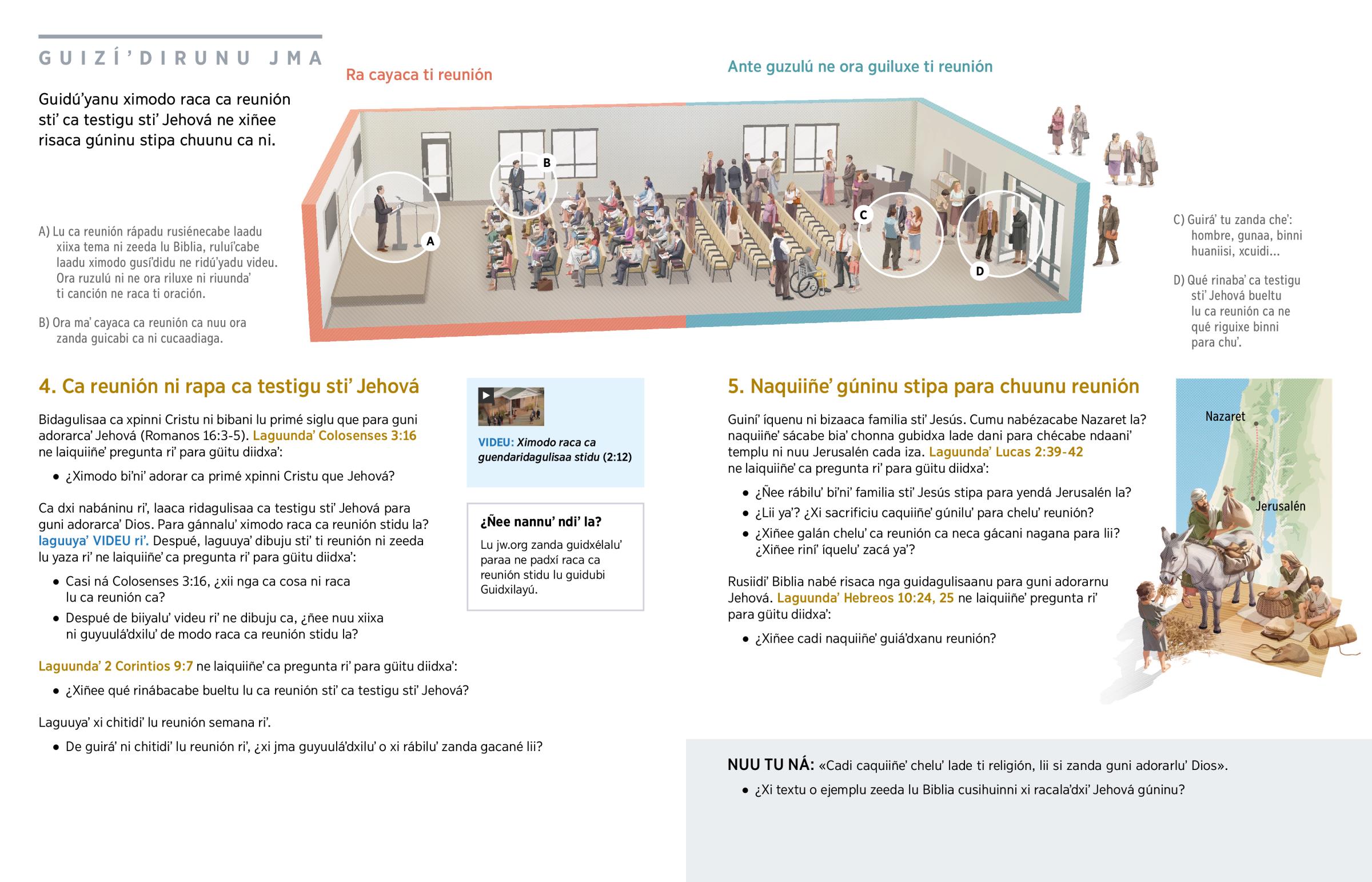 Ni zeeda lu Stiidxaʼ Dios nga rizíʼdidu lúcani ne rusiene chaahuicabe xi ná lu Stiidxaʼ Dios lu ca reunión ca (biindaʼ Nehemías 8:8). Pa cheluʼ ca reunión riʼ la? zaziidiluʼ jma de Jehová ne ximodo nácabe. Ne ra guiziidiluʼ pabiáʼ nadxiibe lii la? jma ziuuláʼdxiluʼ gaca xhamíguluʼ laabe. Laaca zaziidiluʼ ximodo zanda gacanebe lii guibániluʼ nayecheʼ (Isaías 48:17, 18).