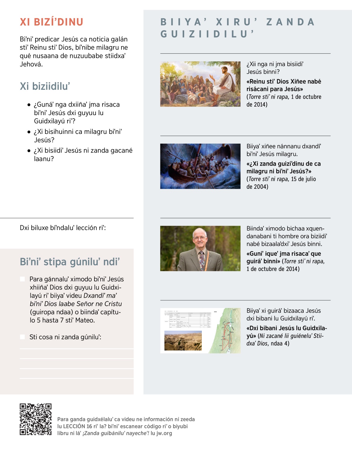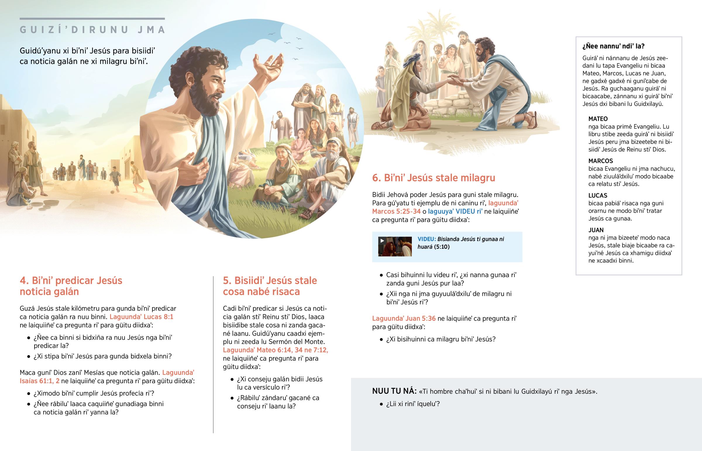 Bidii Jehová poder Jesús para guni stale milagru. Para gúʼyatu ti ejemplu de ni caninu riʼ, laguundaʼ Marcos 5:25-34 o laguuyaʼ VIDEU riʼ ne laiquiiñeʼ ca pregunta riʼ para güitu diidxaʼ: