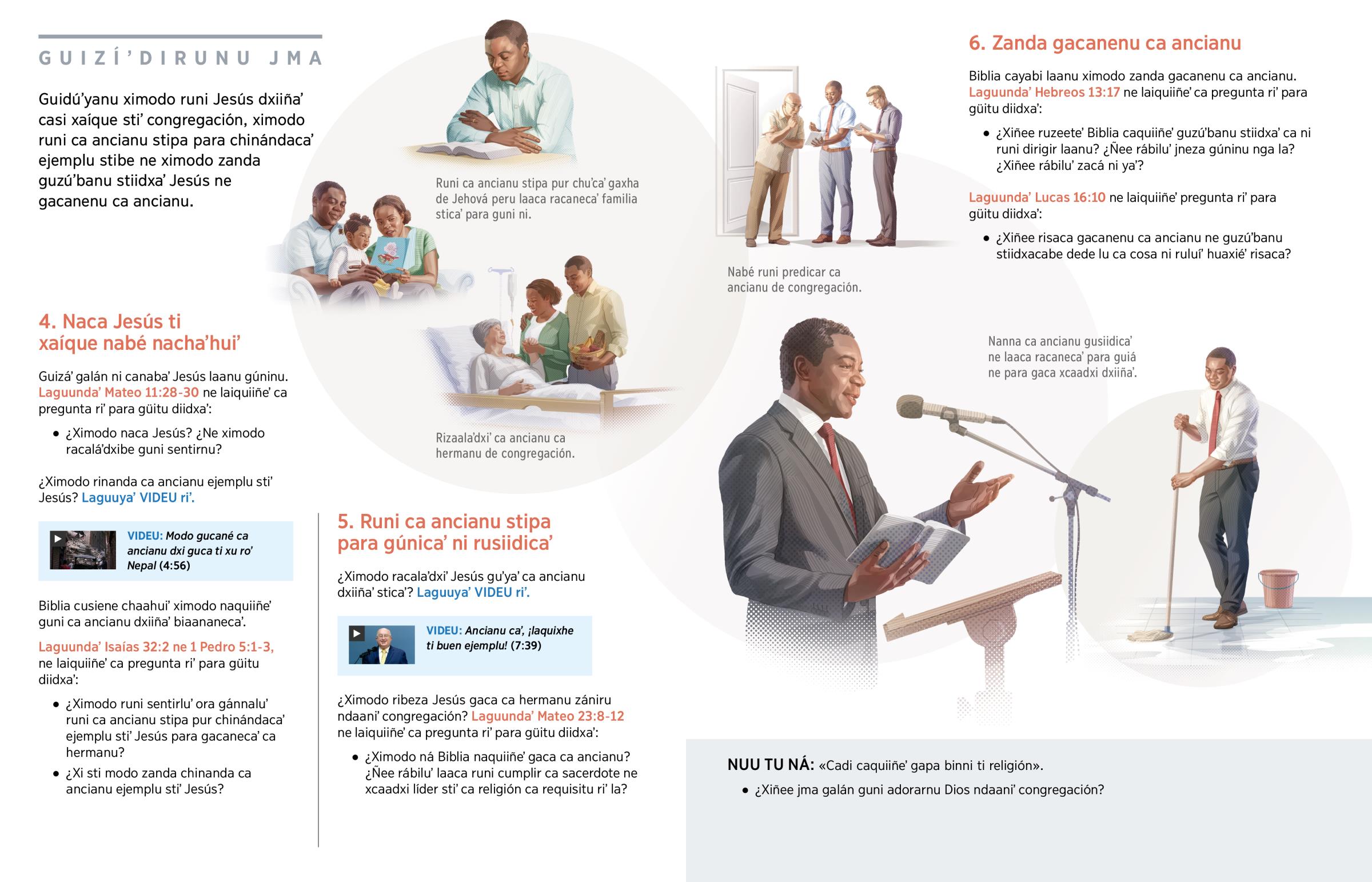 Guidúʼyanu ximodo runi Jesús dxiiñaʼ casi xaíque stiʼ congregación, ximodo runi ca ancianu stipa para chinándacaʼ ejemplu stibe ne ximodo zanda guzúʼbanu stiidxaʼ Jesús ne gacanenu ca ancianu.