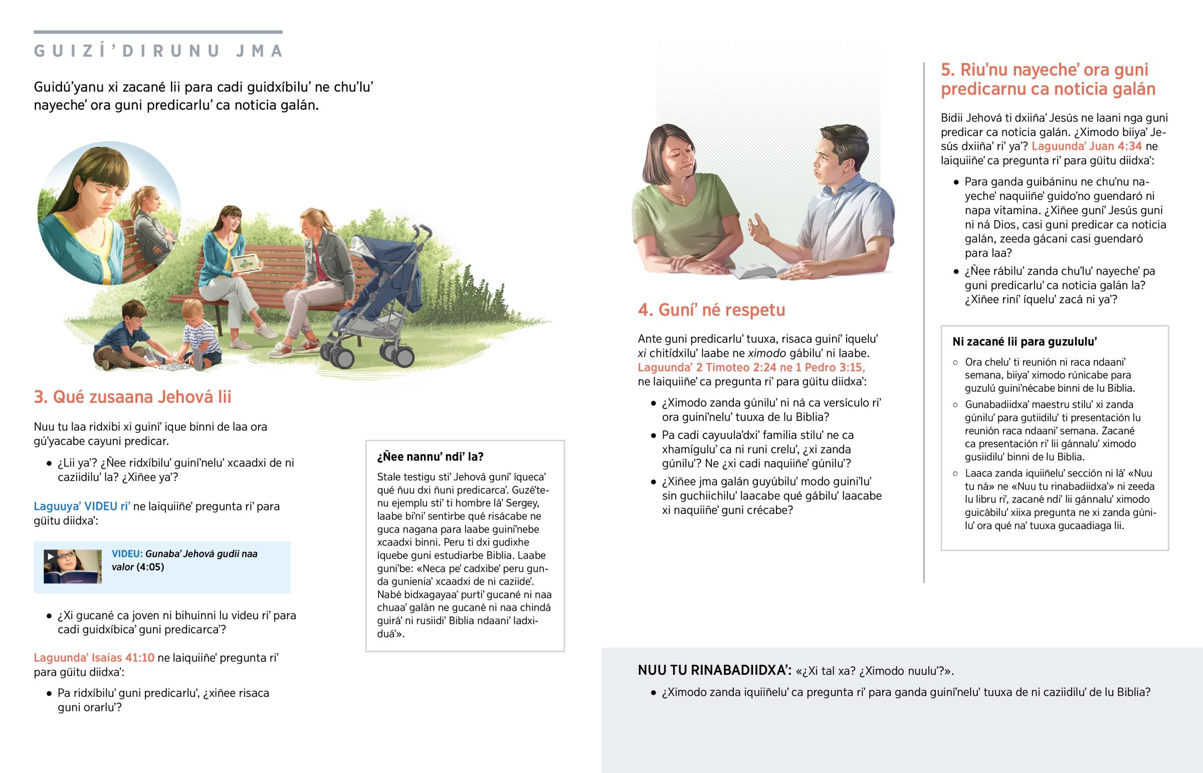 Ca discípulo stiʼ Jesús guniʼcaʼ: «Qué zusaanadu de guinidu de ca cosa ni maʼ bidúʼyadu ne ni maʼ binadiágadu» (Hechos 4:20). Ne cumu risaca para laacabe guiráʼ ni caziidicabe la? pa ñanda si guiráʼ binni ñábicabe ni. ¿Ñee zacaca runi sentirluʼ la? Pa zacá ni la? biyubi modo guiníʼneluʼ ca familia stiluʼ ne ca xhamíguluʼ de ni caziidiluʼ (biindaʼ Colosenses 4:6).